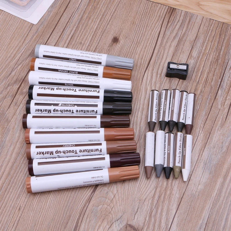 Маркеры для мебели, 21 шт., маркеры и восковые палочки со комплект для заточки шт., для ремонта деревянной мебели, восстановления царапин на полу