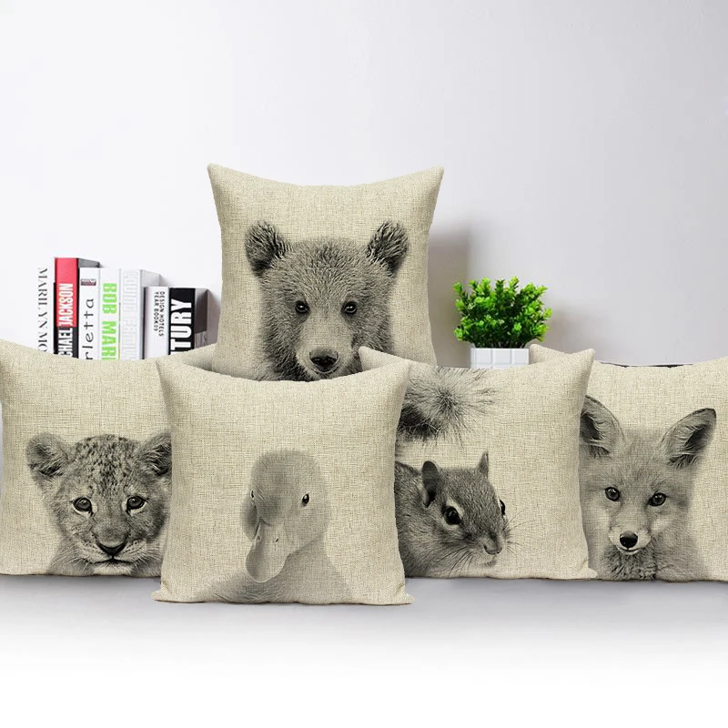 Искусственная подушка с изображением животных, лисы, совы, лосят, ч...