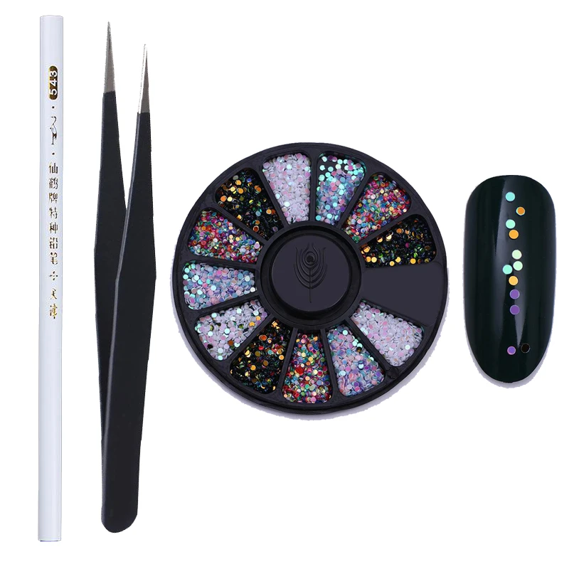 1 разноцветный набор плоские 3D Стразы для дизайна ногтей блестящие кристаллы для ногтей блестящие бусины для украшения ногтей аксессуары для ногтей на колесе