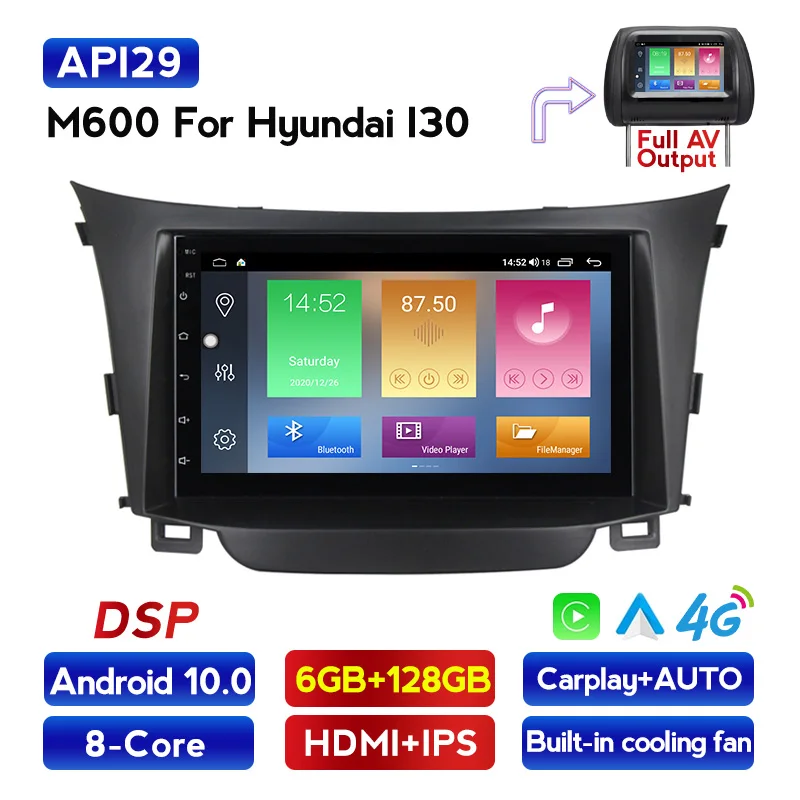 Автомобильный Dvd-плеер, 6 + 128G, Android 10, для Hyundai I30, Elantra GT 2012, 2013, 2014, 2015, 2016, 2 Din, автомобильное радио, Gps, стерео, мультимедиа, аудио