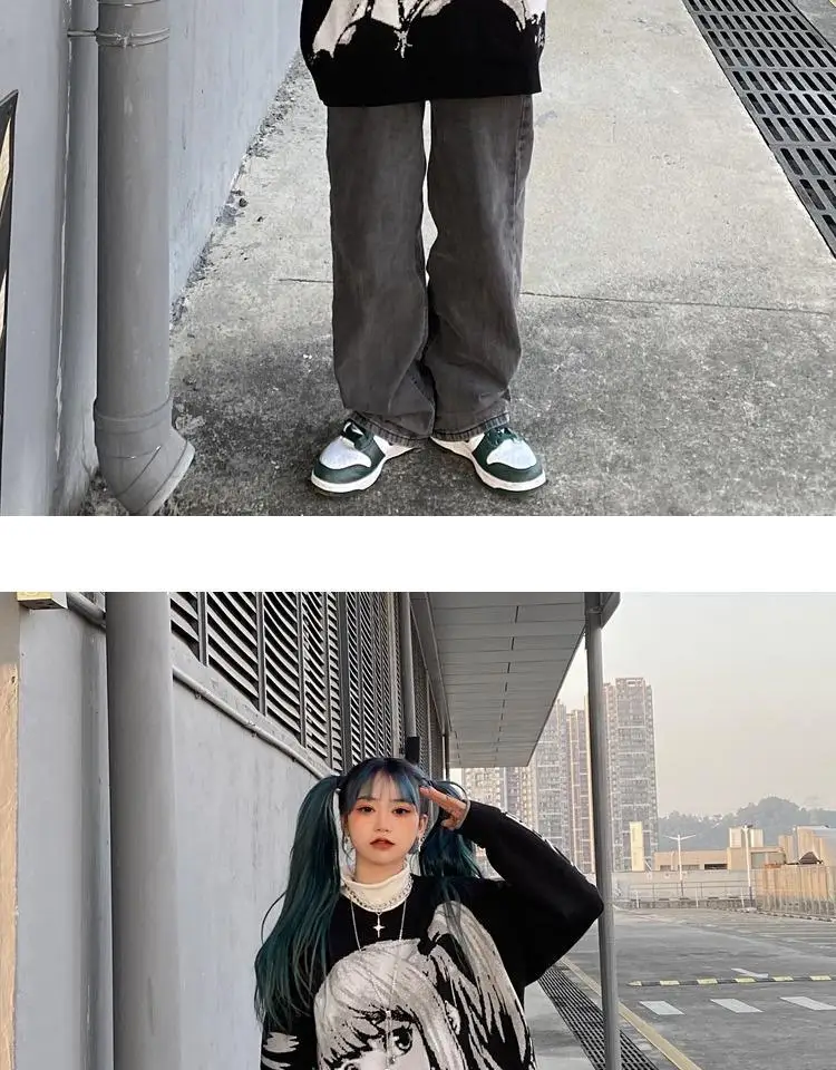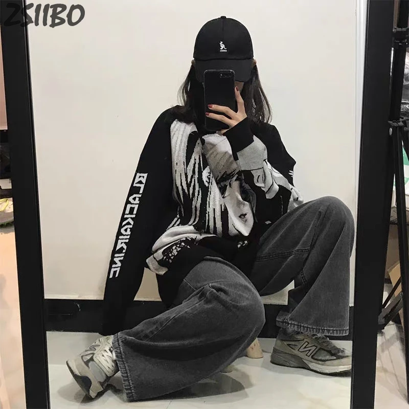 Свитер женский винтажный в стиле хип-хоп, уличная одежда унисекс в стиле Харадзюку, Осенний вязаный свитер в японском стиле ретро, хлопковый пуловер