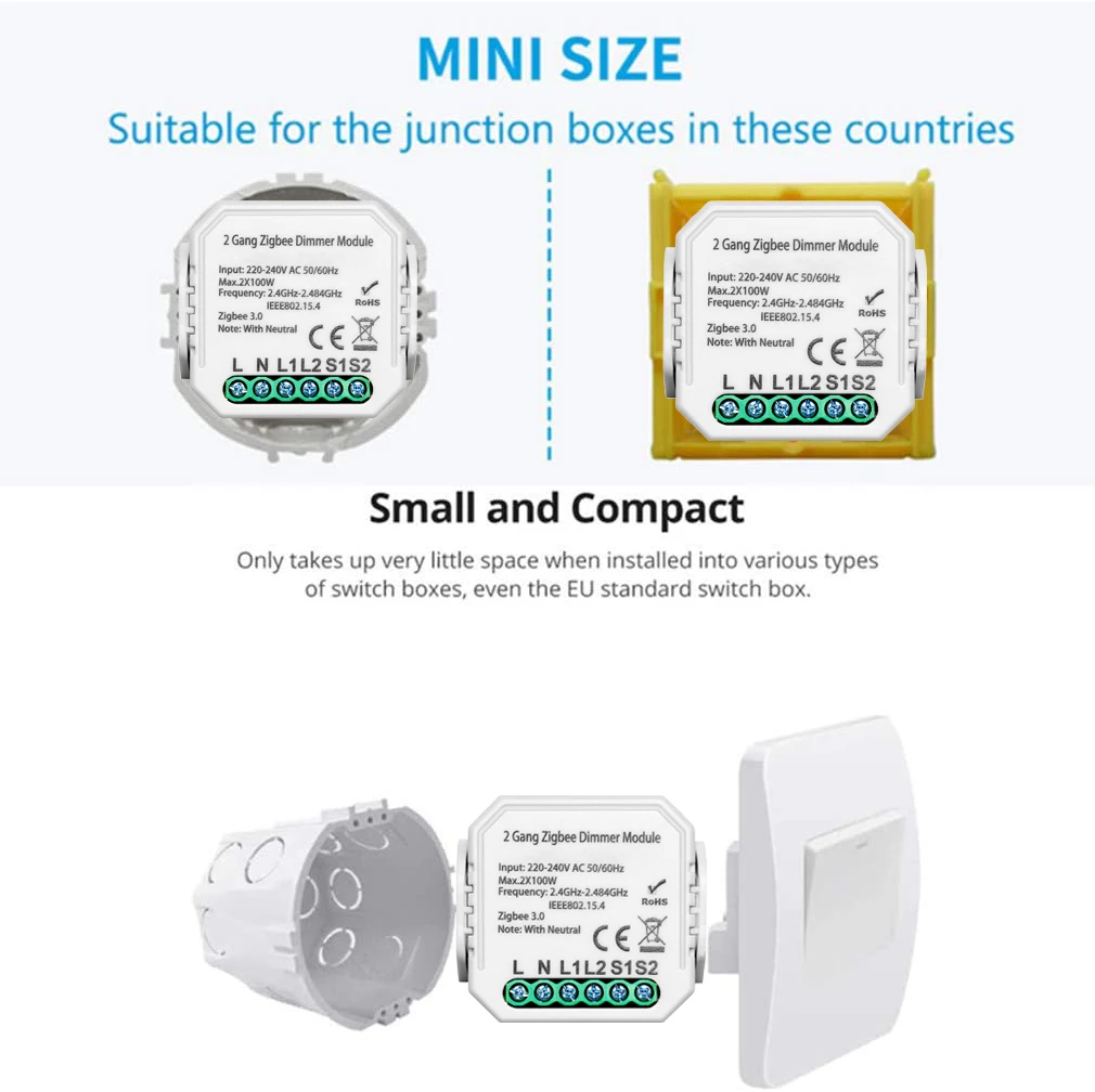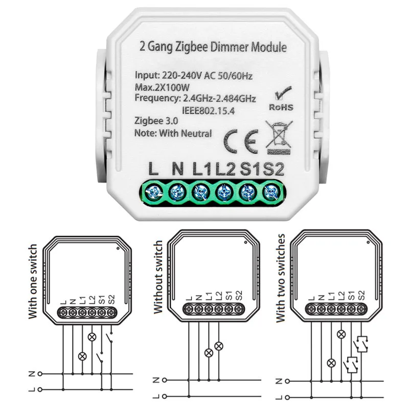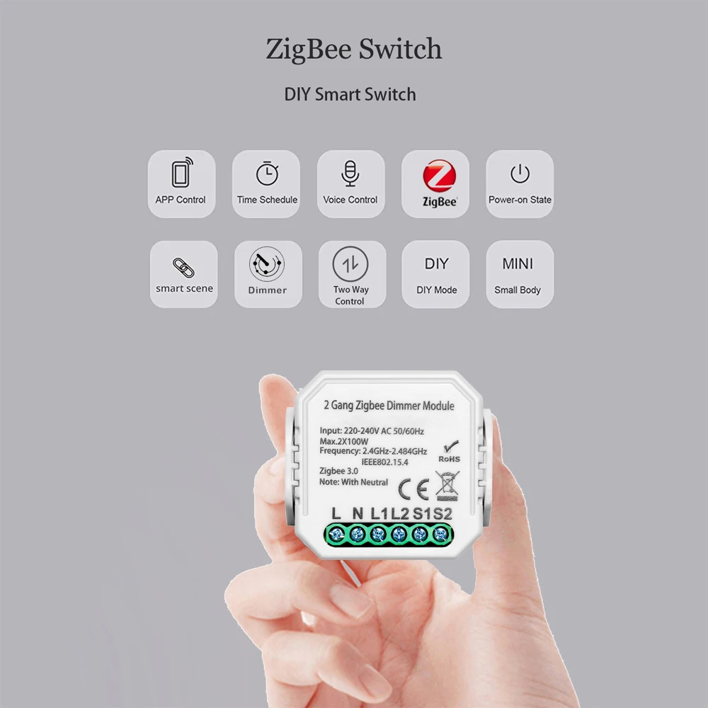 Регулятор-переключатель ZigBee, 1 комплект, 2 пары, с нейтральным двухсторонним беспроводным управлением, поддержка Zigbee2MQTT