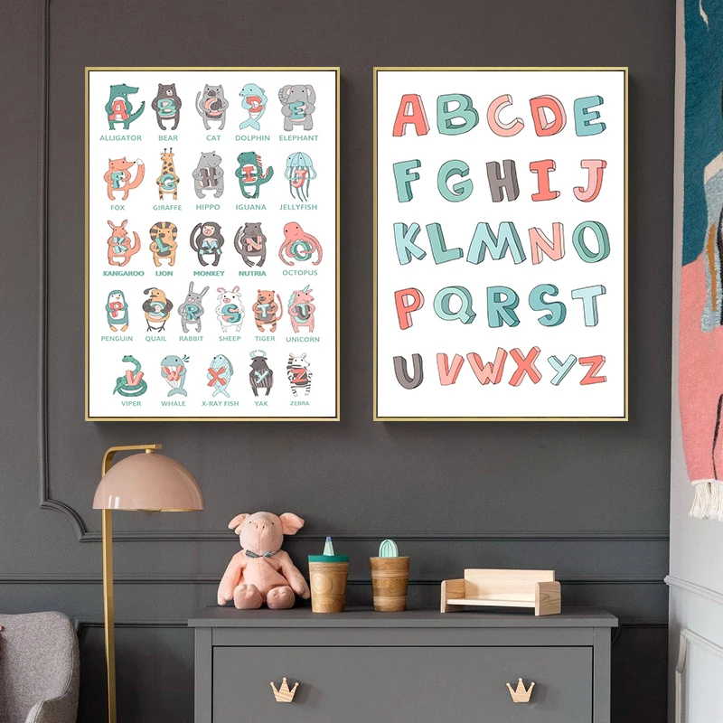 Картина на холсте для детской комнаты, с изображением животных, пин...