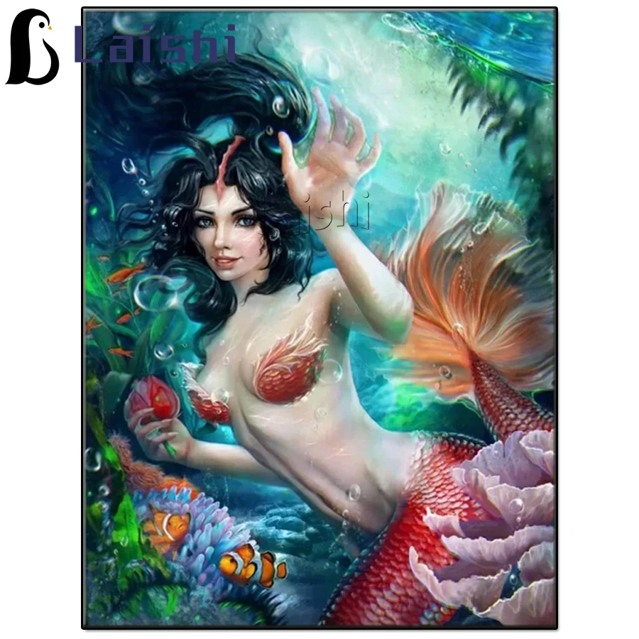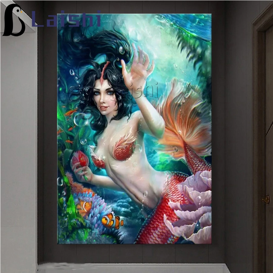 5d картины с изображением девочки-русалки, полноразмерная Алмазная картина-пазл с квадратными и круглыми стразами, мультяшная Алмазная картина с фантазийным искусством, подарок для девушки