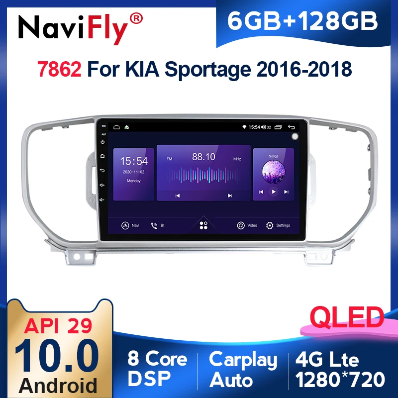 Автомобильный радиоплеер NaviFly серии 7862, 6 ГБ + 128 Гб QLED 1280*720 Android 10,0, GPS-навигация для KIA KX5 Sportage 4 QL 2016 - 2018