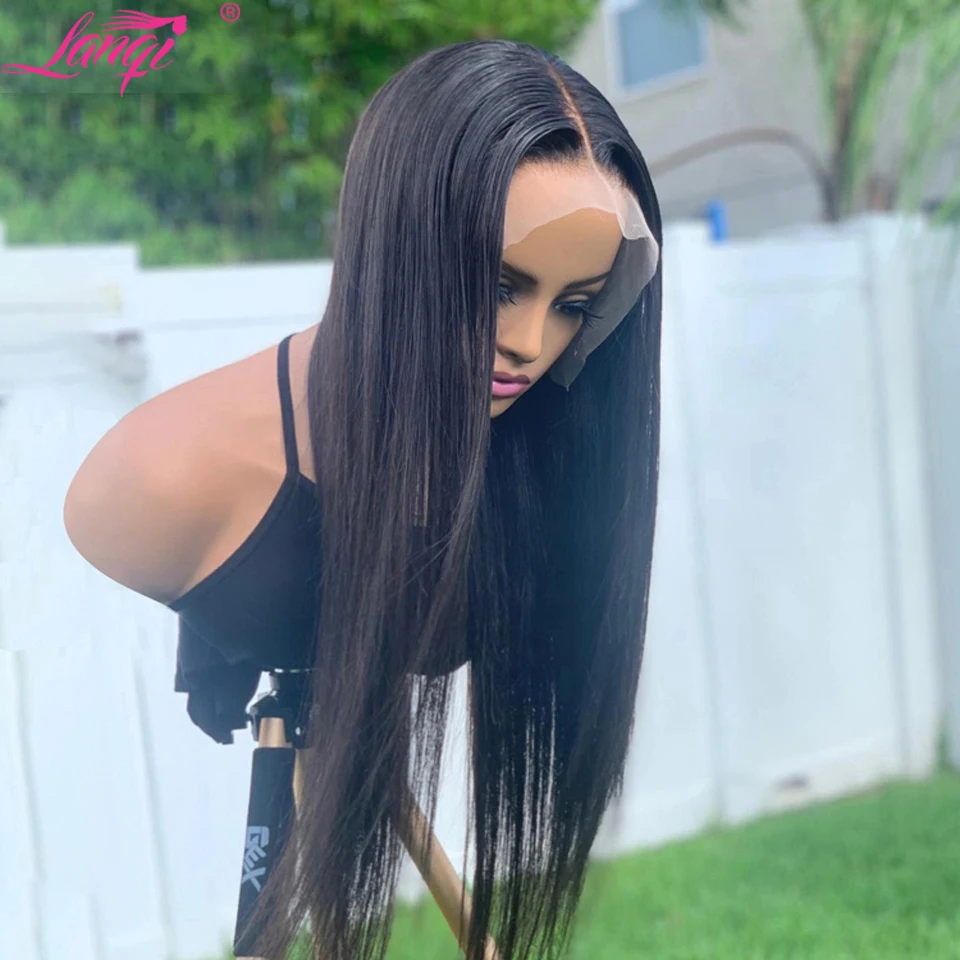 13x4x1 Lanqi 30 дюймов, бразильские прямые парики, предварительно выщипанные кости, прямые Т-образные волосы, парики для женщин