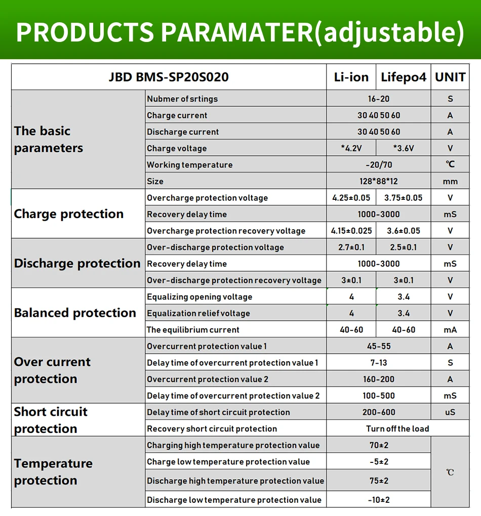● 16S-20S BMS для Li-ion/Lifepo4 батареи