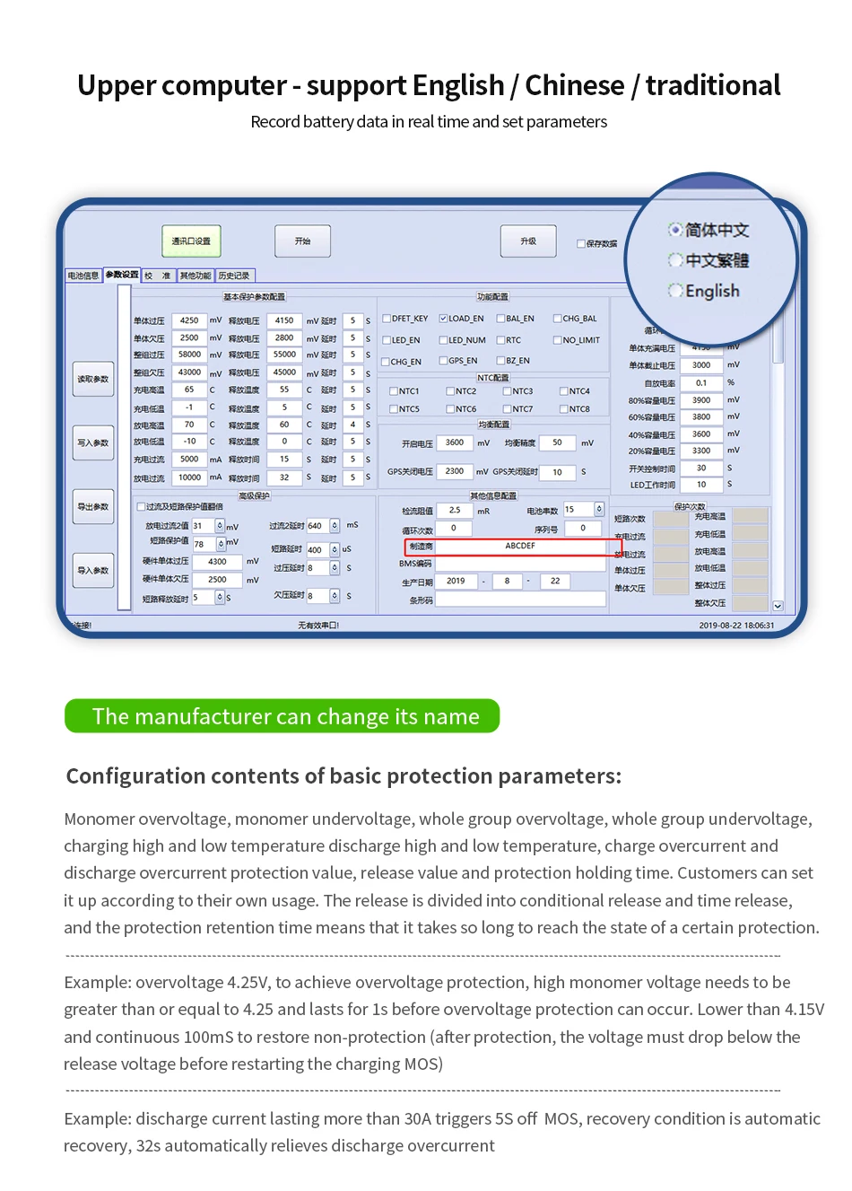 ● Поддержка связи UART/RS485, может считывать все данные батареи в режиме реального времени и онлайн-обновление