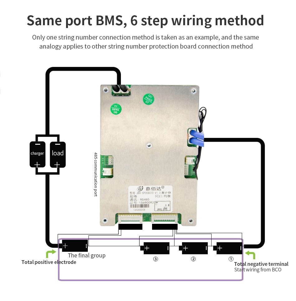 При сборке проводки, правильно приварите провод к аккумуляторной батарее, подключите B- of BMS к общему отрицательному электроду ячейки, А затем вставьте плоский кабель в штыревое сиденье на PCM. (Диффузные струны, диффузный способ. Пожалуйста, свяжитесь со службой поддержки клиентов для получения подробной информации)