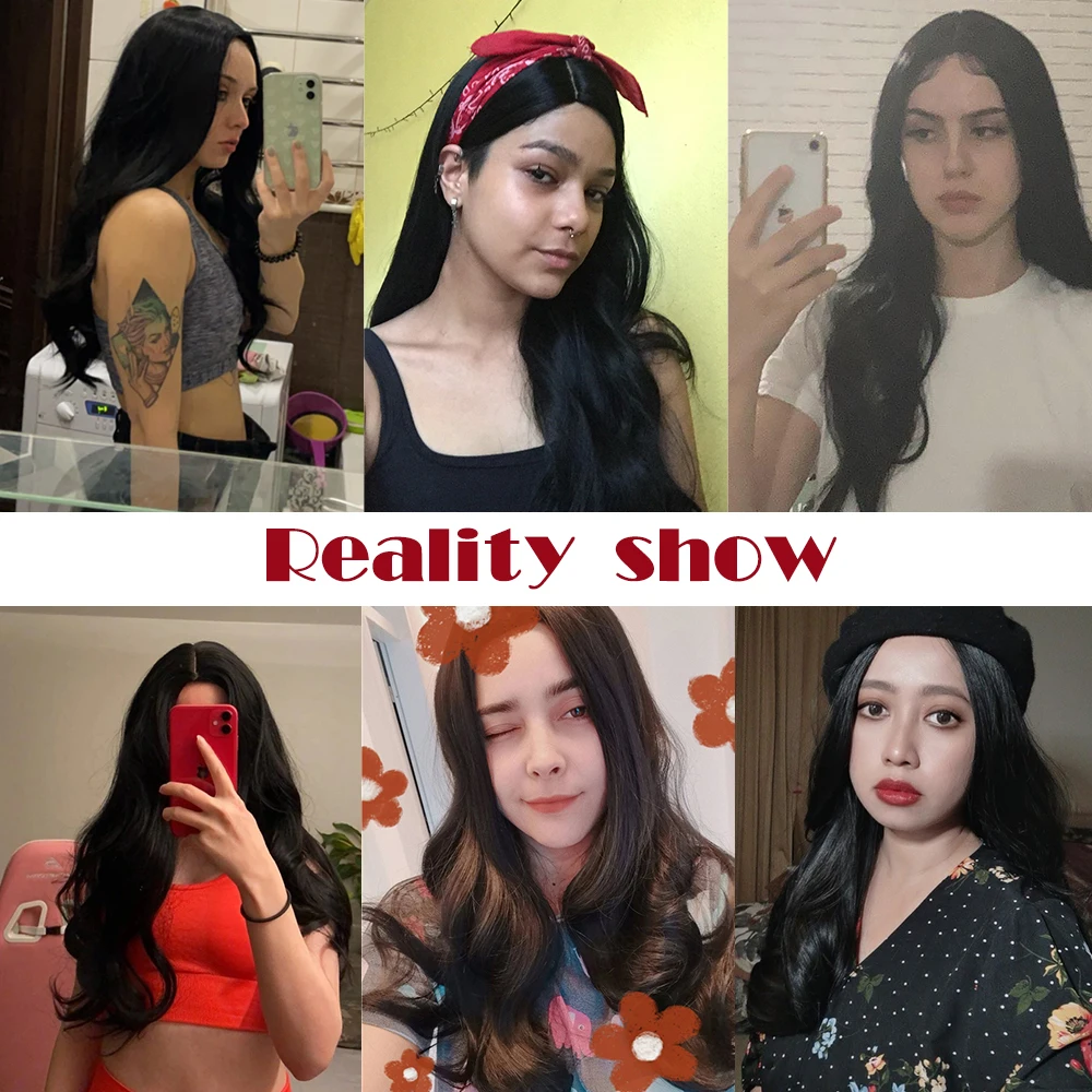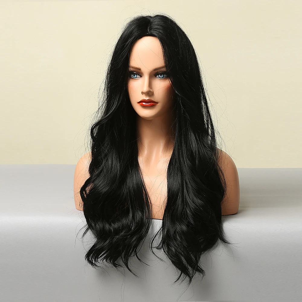 Темные черные натуральные длинные волнистые синтетические волосы парики средняя часть термостойкие парики для афроамериканских женщин ежедневный косплей для вечерние