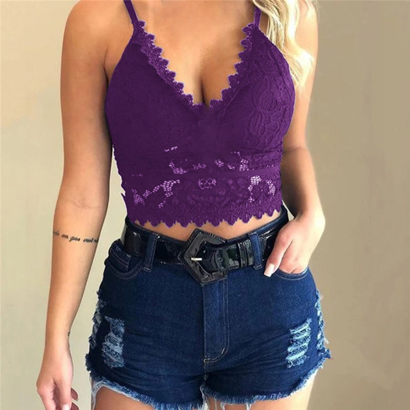 Топ женский кружевной с V-образным вырезом, с мягкой подкладкой, 2021