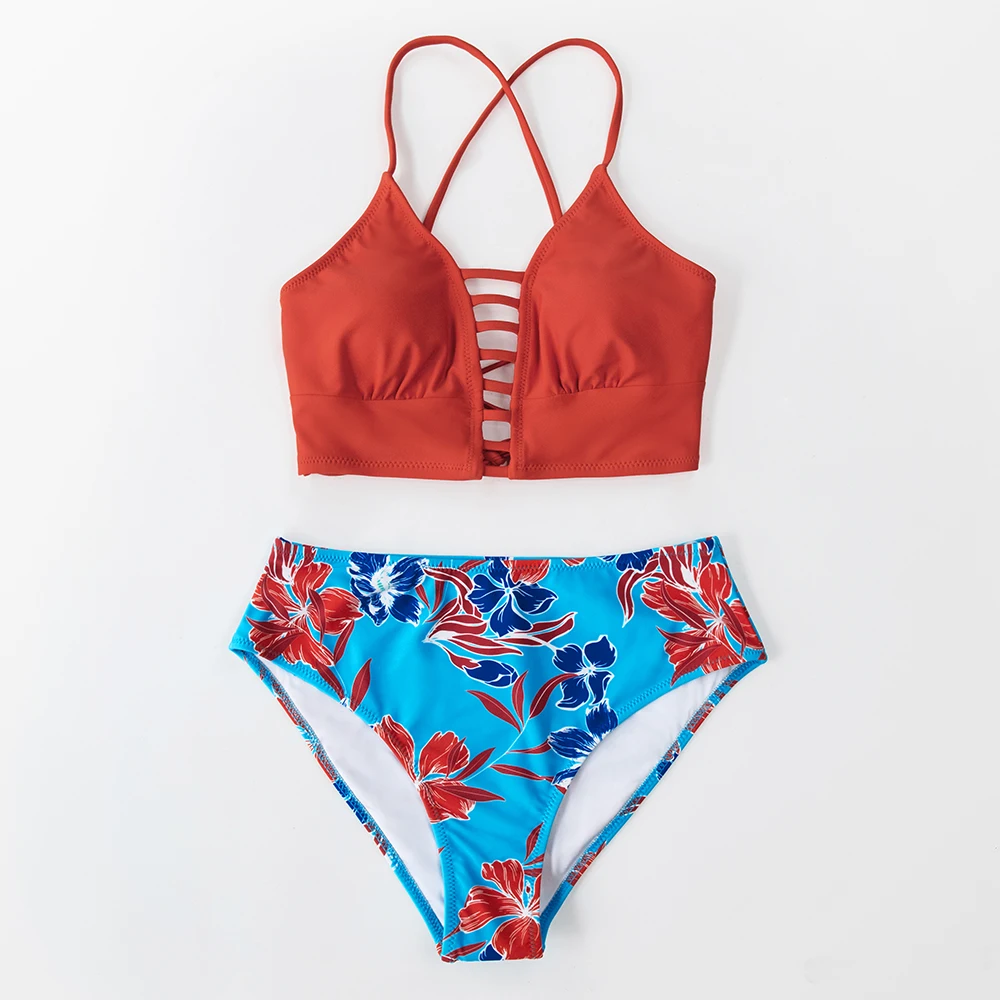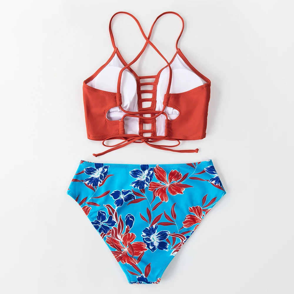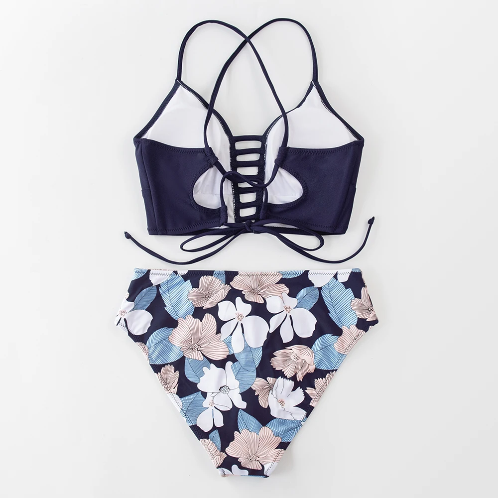 Купальник-Бикини на шнуровке с заниженной талией и цветочным принтом