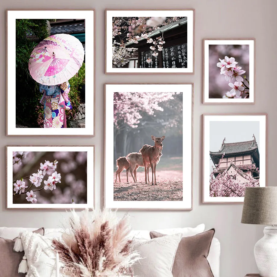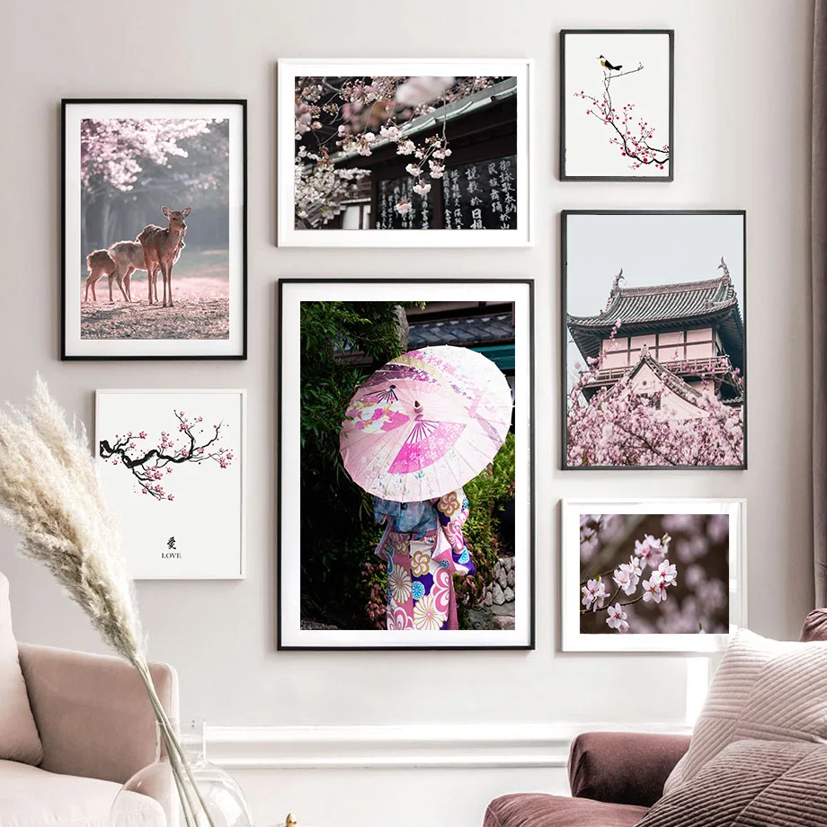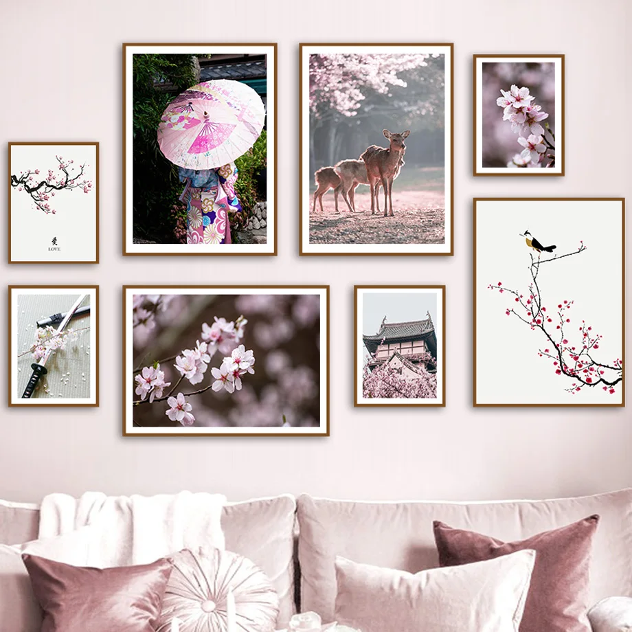 Настенные постеры с розовыми цветами, цветами вишни, розой, пионами...