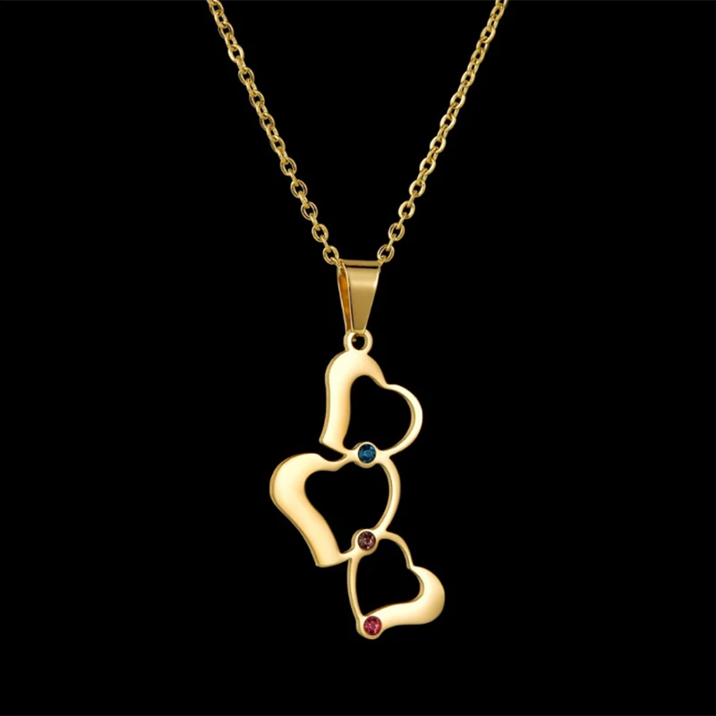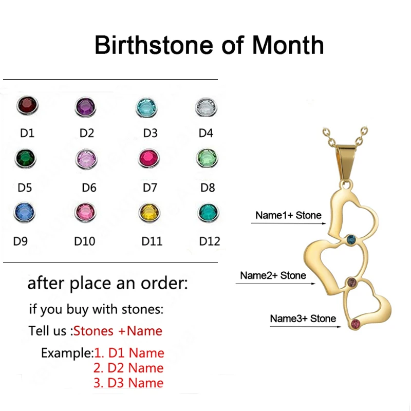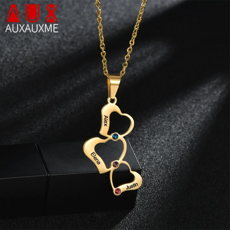 Auxauxme на заказ 3 любовь сердце полые Дизайн кулон ожерелье с зодиакальным камнем гравировка имя ожерелье из нержавеющей стали ювелирные изделия подарокПривет друг, Добро пожаловать в наш магазин!