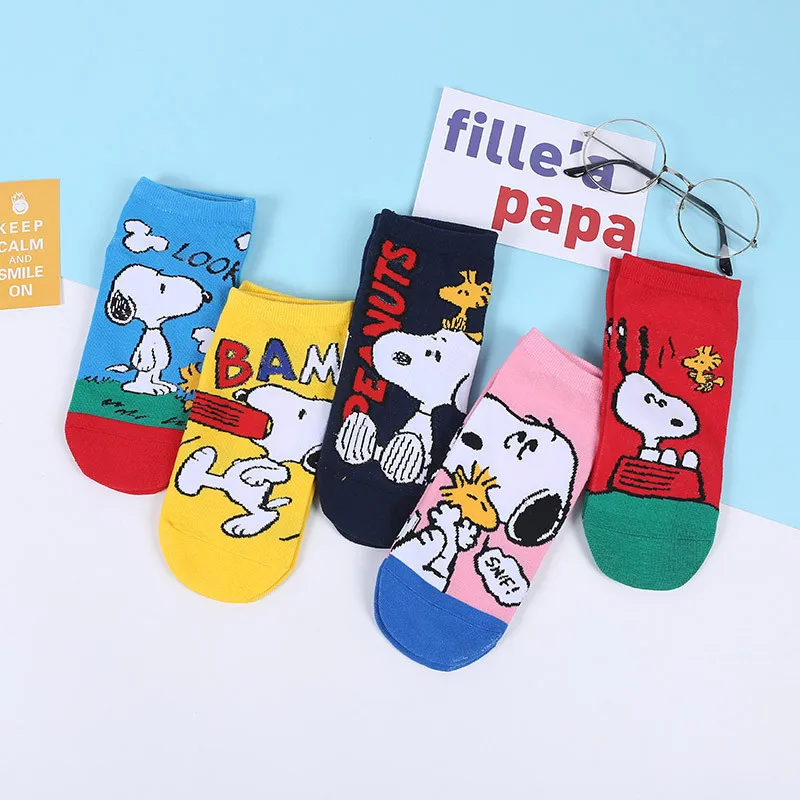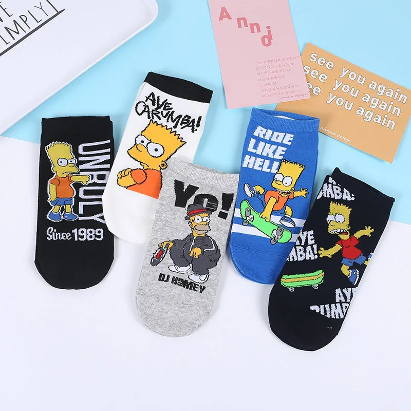 Носки женские короткие летние хлопковые с рисунком Микки и Минни, 5 пар