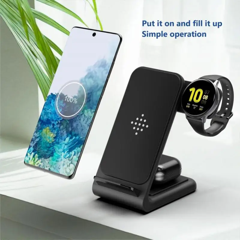 ●3 в 1 Многофункциональное Беспроводное зарядное устройство: Идеально подходит для Мобильный телефон/для Samsung Watch/для Samsung Galaxy Buds/в то же время, требуется только Кабель-адаптер для питания всех устройств.