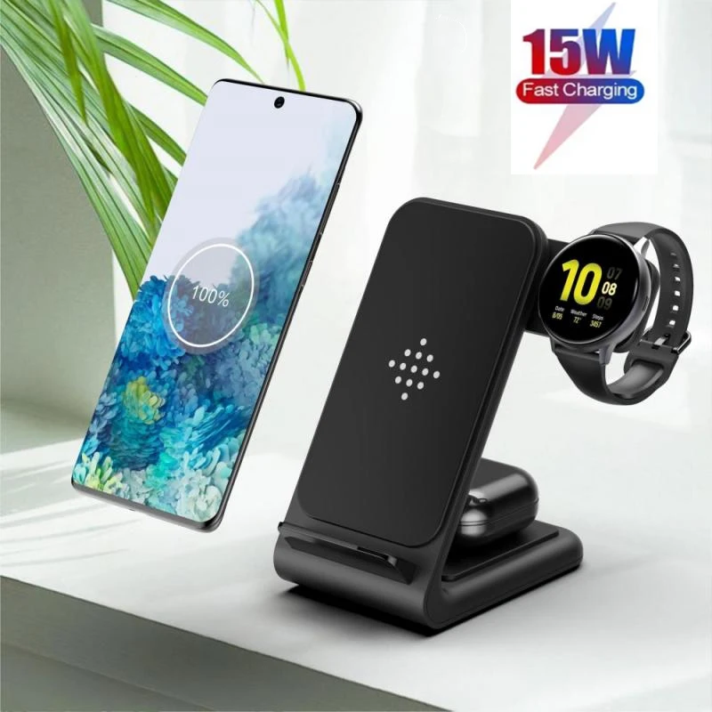 Новинка 15 Вт Быстрая зарядка 3 в 1 Беспроводное зарядное устройство для IPhone12 зарядная док-станция для Samsung Galaxy WatchGalaxy Bud Беспроводная зарядная панель