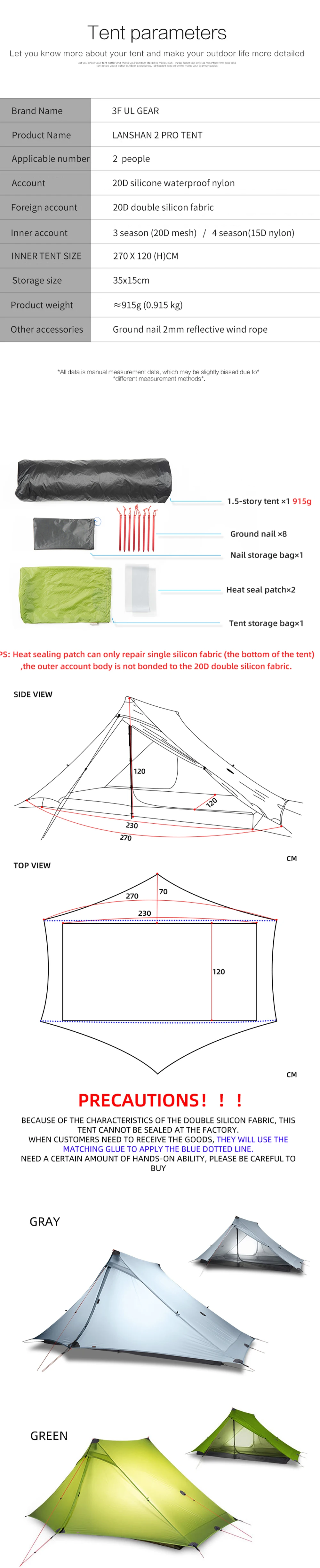 3F UL шестерни LanShan 2 pro 2 человек Открытый Сверхлегкий Палатка...