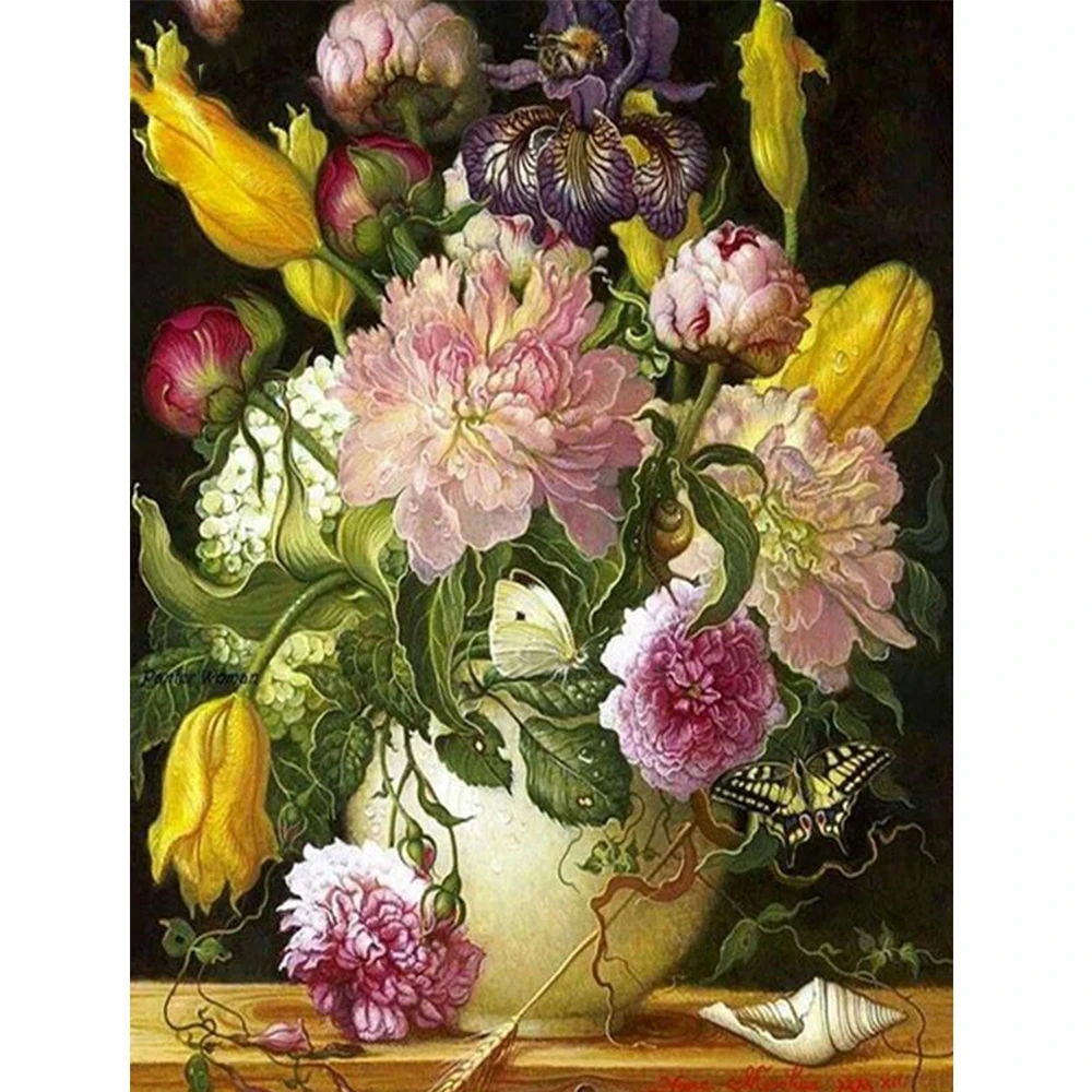Краски с бриллиантом Краски ing Вышивка крестом Цветочная вышивка мозаика узор Стразы вазы с пионами площади горный хрусталь полный домашний декор