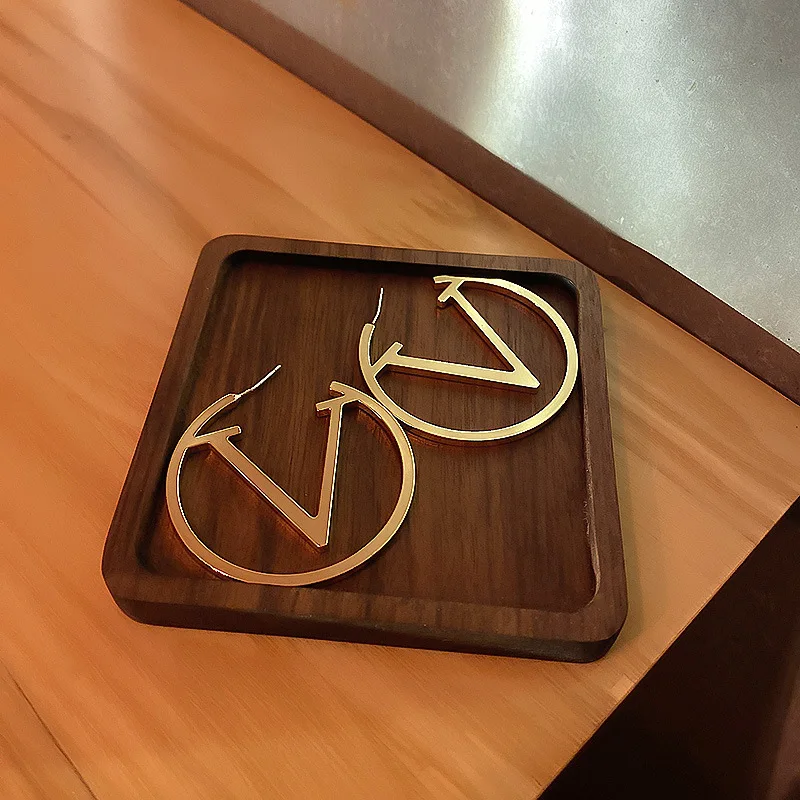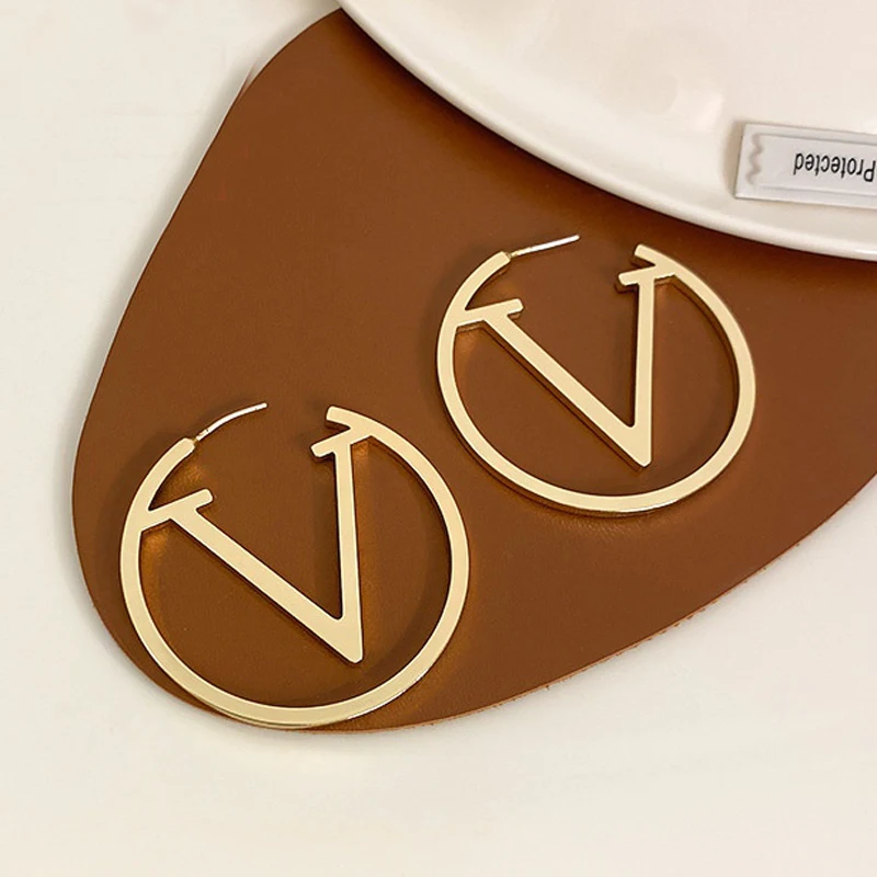 Женские золотистые серьги-кольца из нержавеющей стали, простые золотистые серьги-каффы в стиле панк с V-образным вырезом и буквами, вечерняя бижутерия