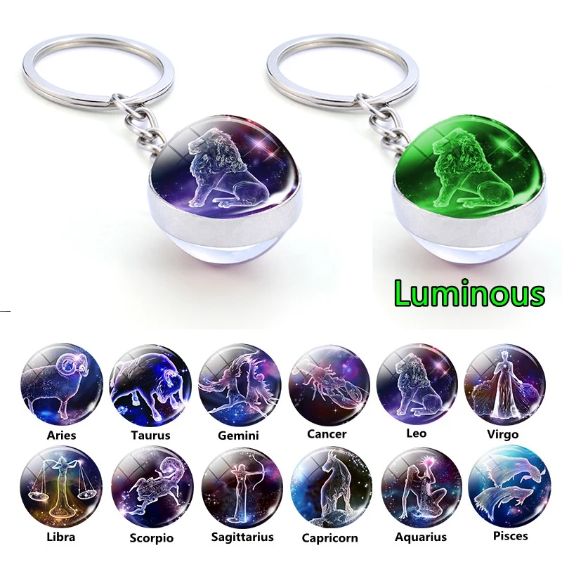 Светится в темноте 12 брелок для ключей Созвездие двухсторонний стеклянный шар брелок светящийся Зодиак ювелирные изделия кулон