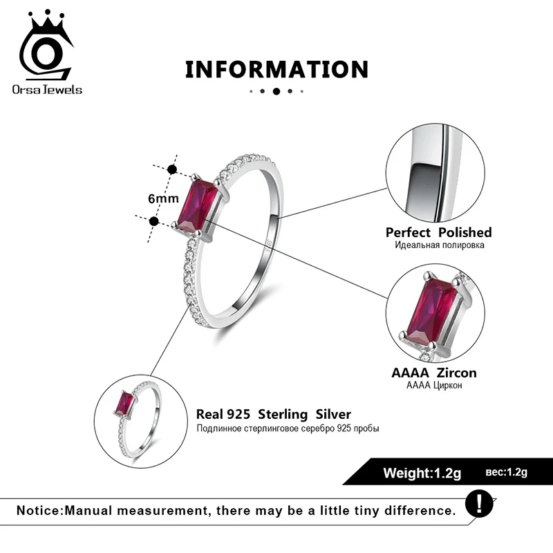 ORSA JEWELS уникальное кольцо для женщин из стерлингового серебра 925 пробы с красным цирконием AAAA, Женские Ювелирные изделия, свадебные кольца на годовщину OSR169