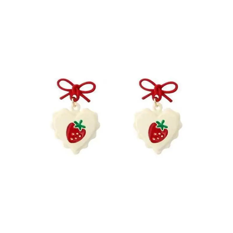 Женские серьги-подвески в виде клубники, кремовые серьги с красным бантом, ювелирные изделия для подростков и студентов, 2021