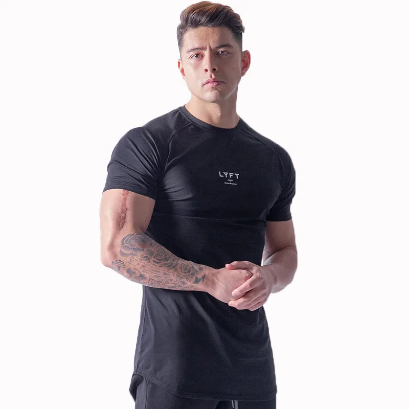 Мужская спортивная тренировочная одежда Lyft (фитнес), эластичная хлопковая футболка с коротким рукавом, весна-лето, 2021