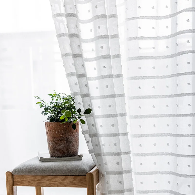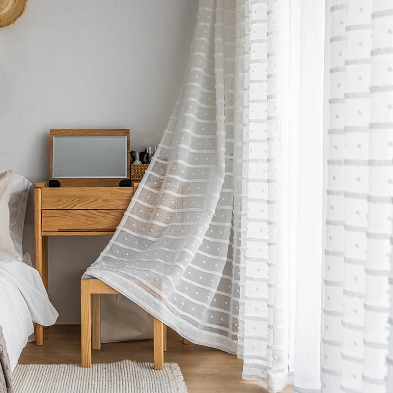 Жаккард полосатый фатин белые шторы в простом стиле для Гостиная Спальня Прозрачная Юбка, Тюлевая ткань жалюзи на окна и двери один Панель