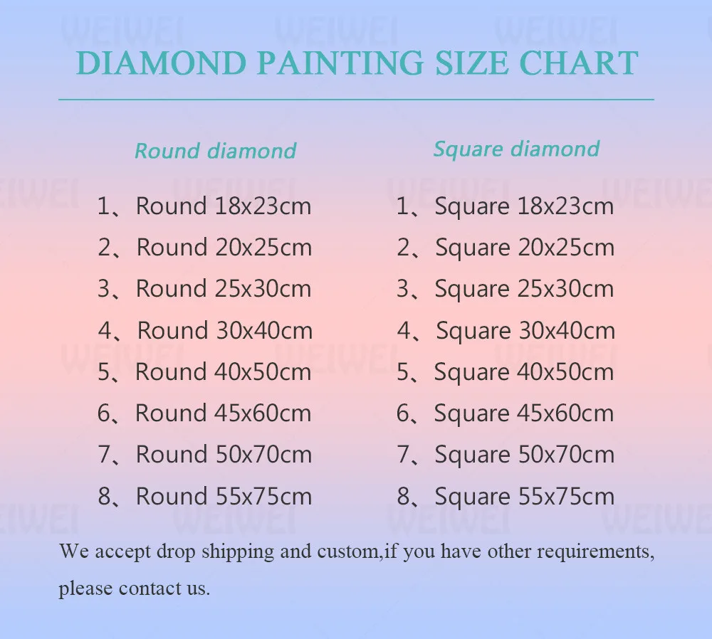 Добро пожаловать в мой магазин, который предлагает 100% гарантированное качество картин. Разумные цены и внимание клиентов-наши главные цели.Вы можете разместить заказ напрямую, и мы напечатаем и организуем доставку как можно скорее. Если у вас есть какие-либо вопросы, вы можете связаться со службой поддержки клиентов.ПримечаниеБез рамки! Только Алмазная картина!Это Алмазная картина DIY, не готовая картина. Вы должны закончить его самостоятельно.Все размеры измеряются вручную, поэтому, пожалуйста, учитывайте разницу в 1-2 см.Если вам нужен другой размер, пожалуйста, свяжитесь с нами, и мы подгоняем его для вас.Следуйте за этим магазином, чтобы получить больше предложений и скидок!