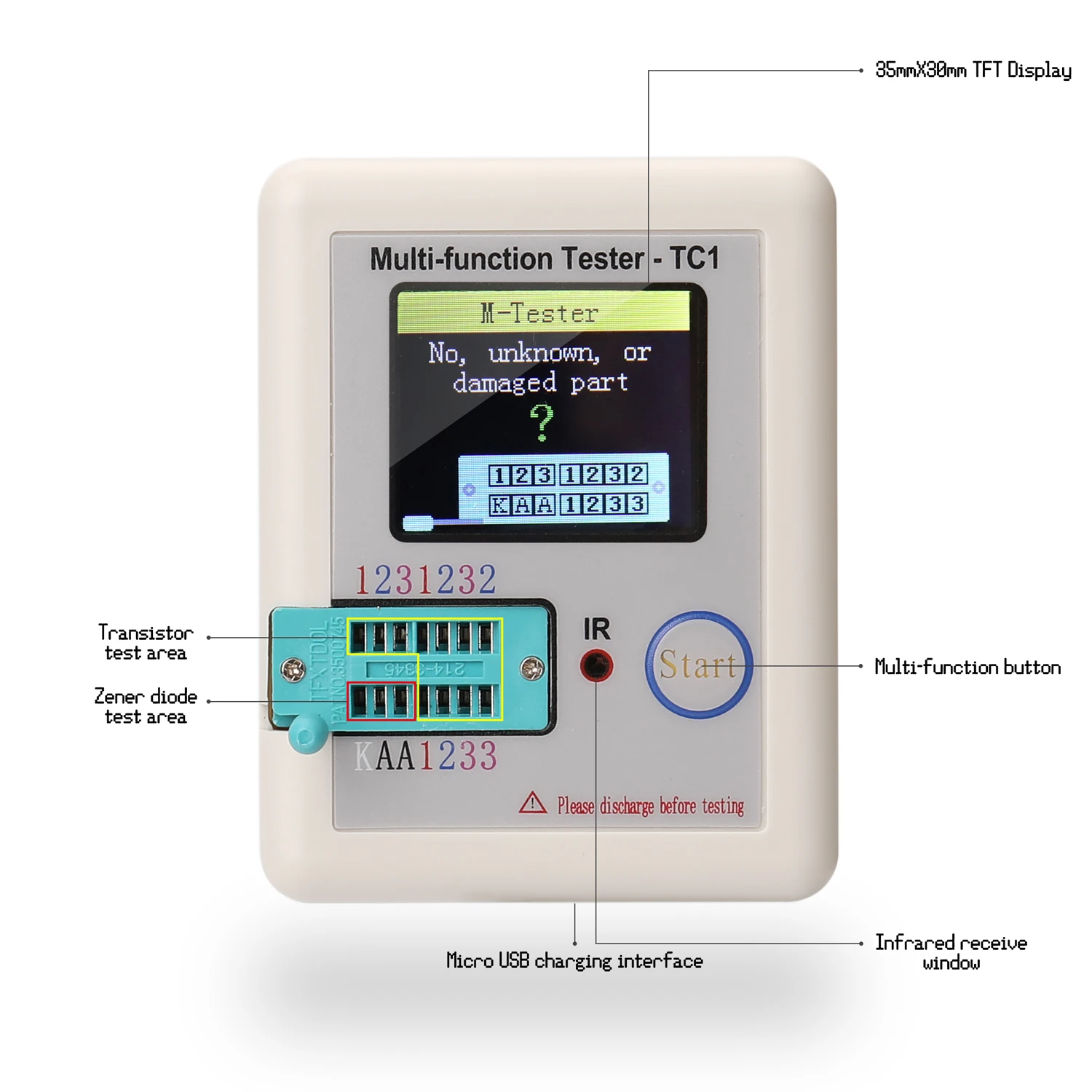 Тестер с полным графическим дисплеем, N-канальный P-канальный полевой транзистор NPN, измеритель сопротивления диода, индуктивности, емкости, тиристорный преобразователь батареи