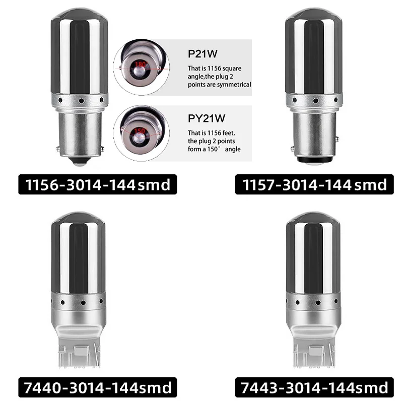 Светодиодные лампы S25 Canbus 1156, BA15S, P21W, BAU15S, PY21W, T20, 7440, 7443, W21W, 3014, 144smd, без ошибок, указатели поворота, стоп-сигнал, 1 шт.