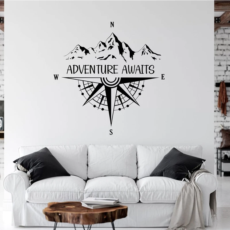 Горы виниловые наклейки на стену деревья лес природа Компас лагерь ...