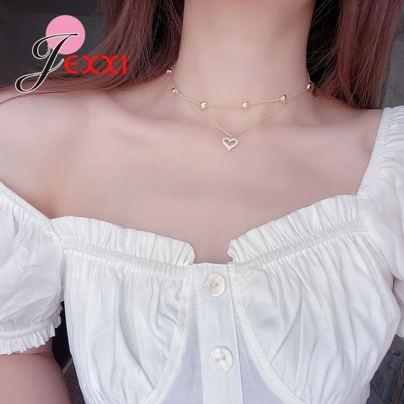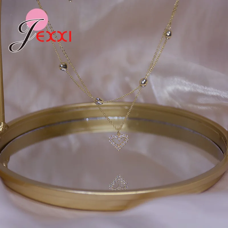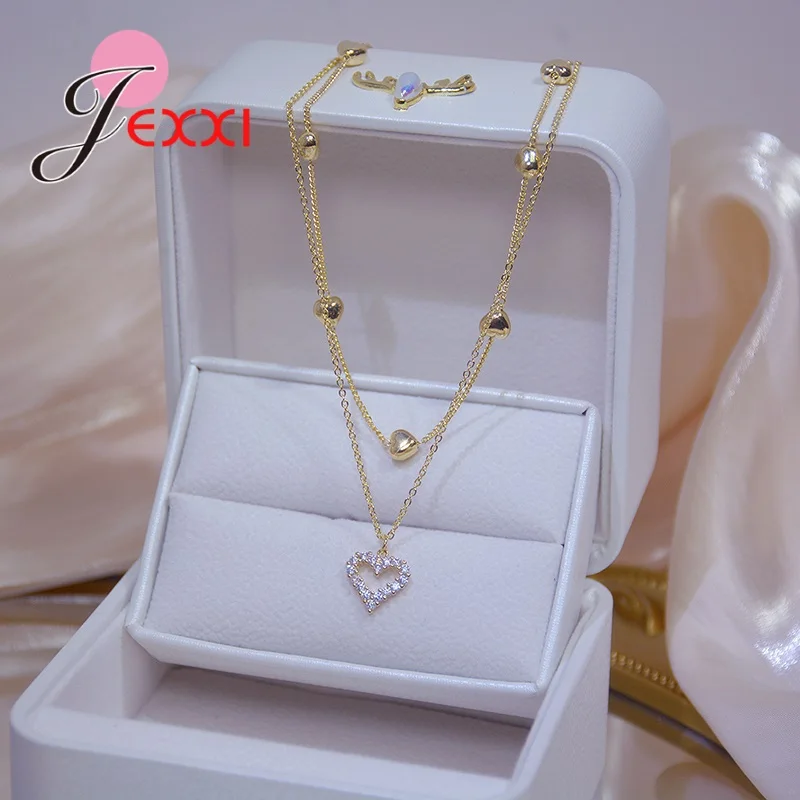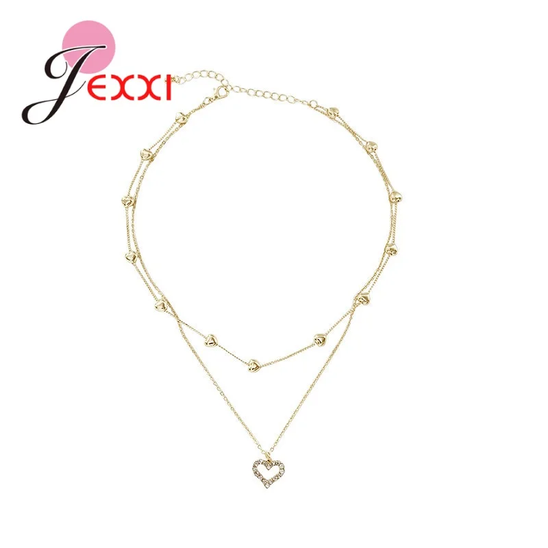 Новая женская мода кристалл сердце ожерелье кулон две цепи ожерелье подвеска ожерелье Шарм подарки подруге