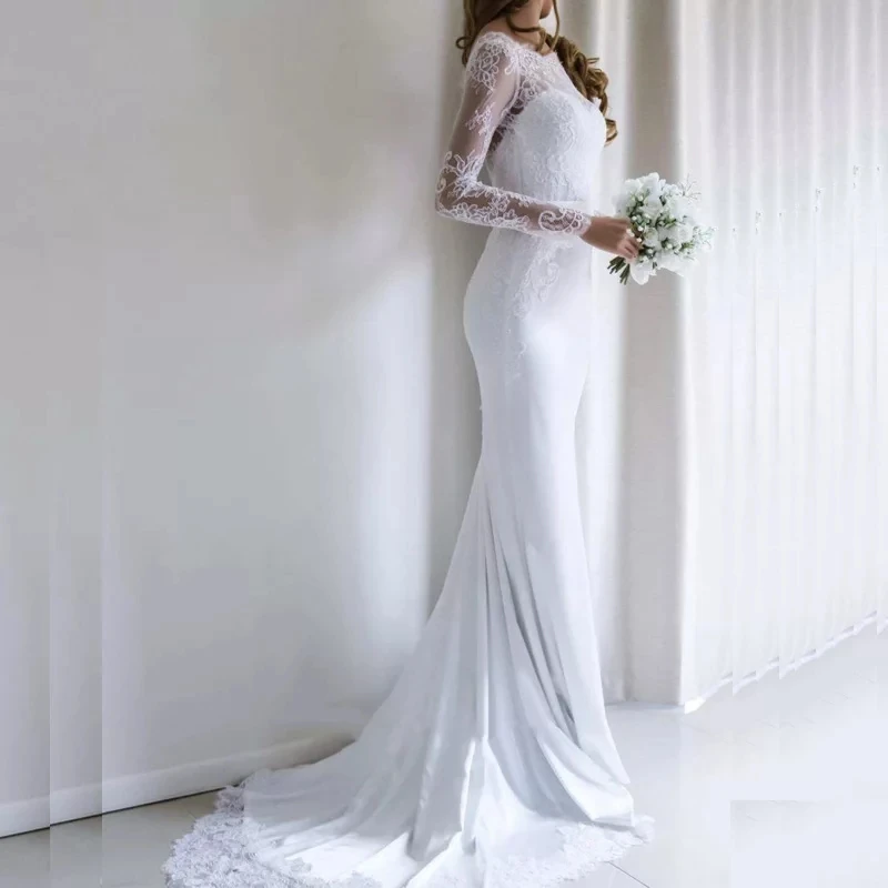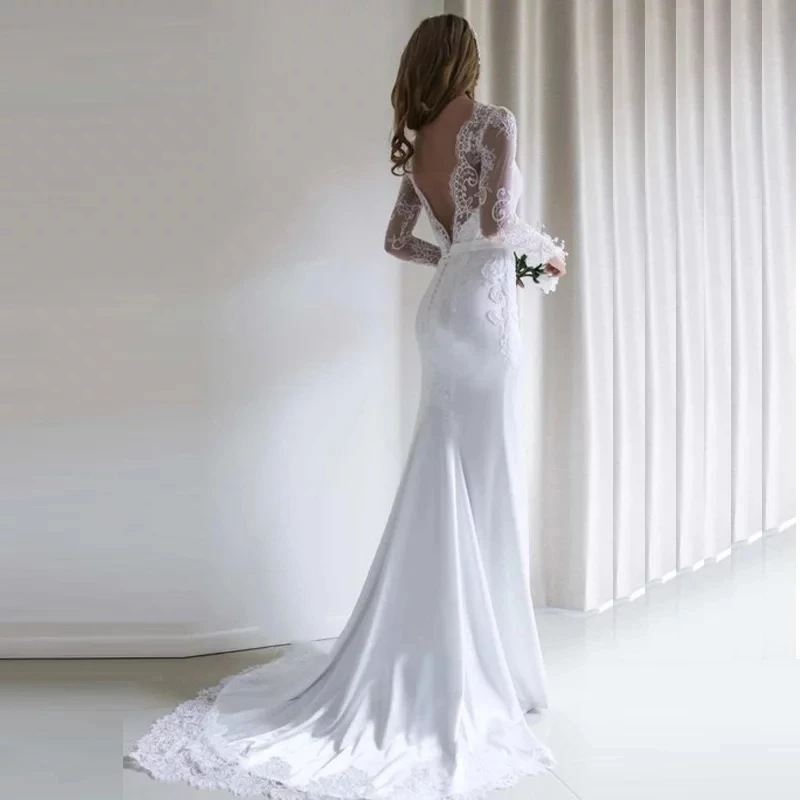 Элегантное кружевное свадебное платье-Русалка с длинным рукавом, сексуальное платье принцессы с открытой спиной для невесты, вечернее платье на заказ