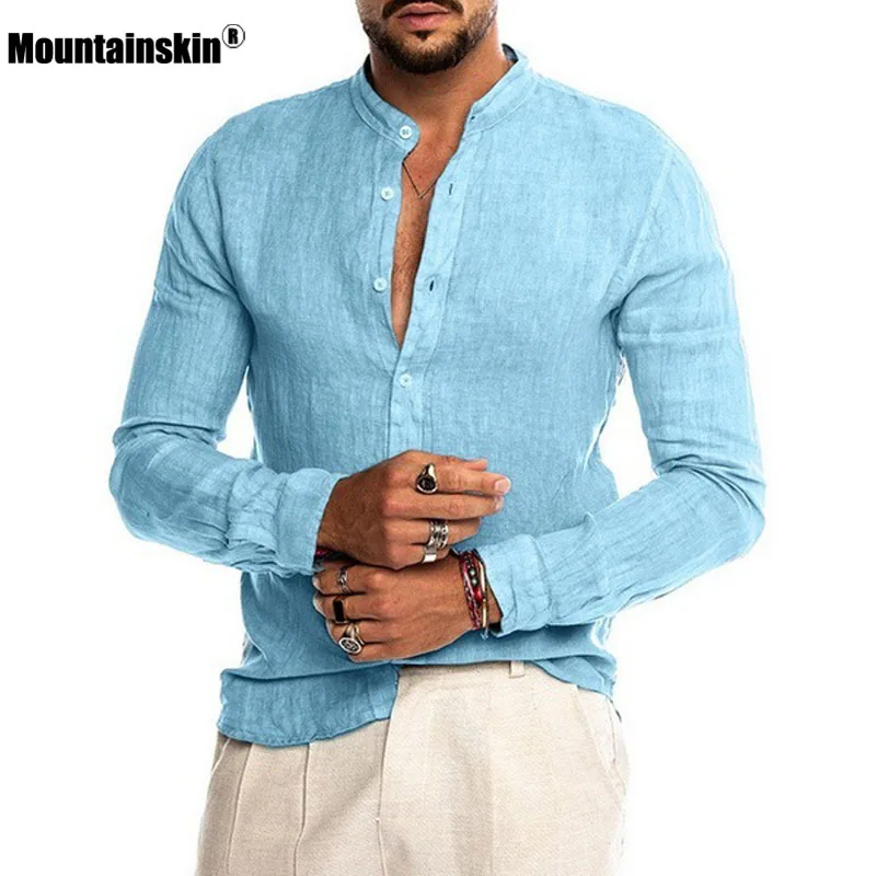 Рубашка Mountainskin мужская из хлопка и льна, Повседневная Удобная блузка, модная однотонная уличная одежда свободного покроя, MT138