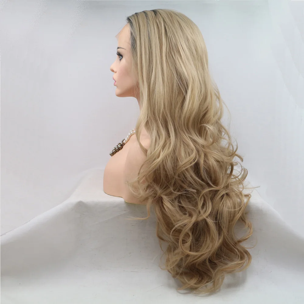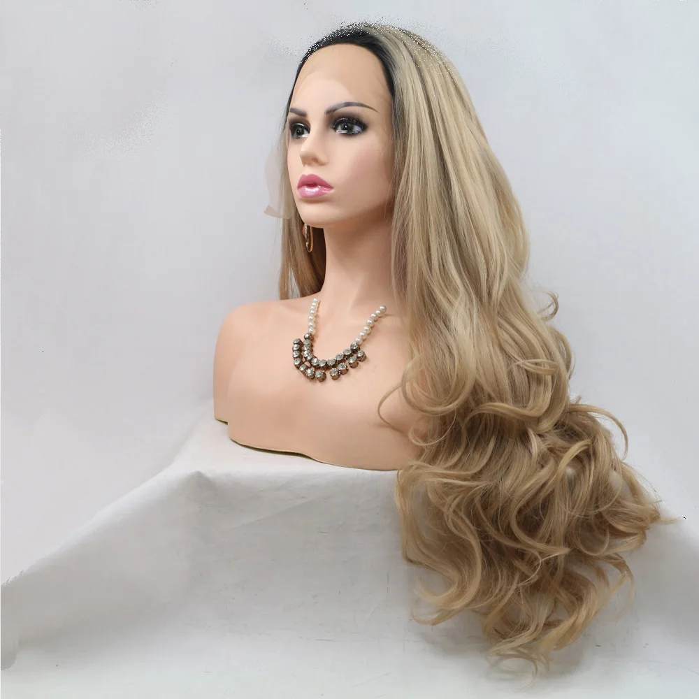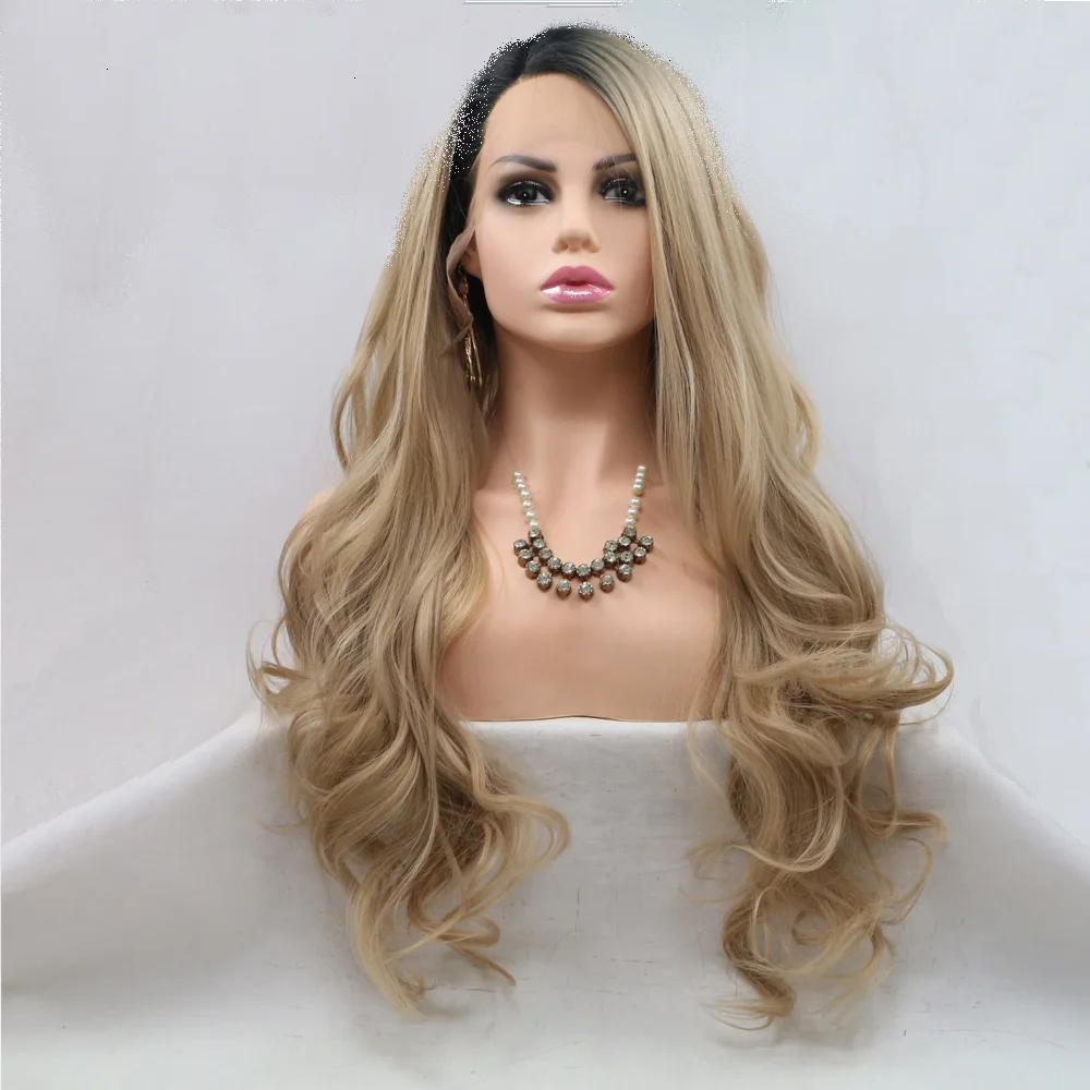 Длинные волнистые парики на сетке спереди с темными корнями, светлы...