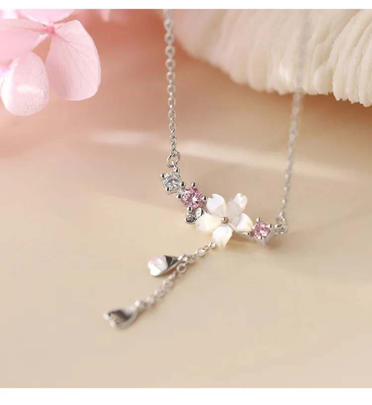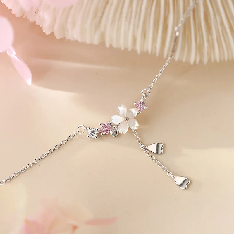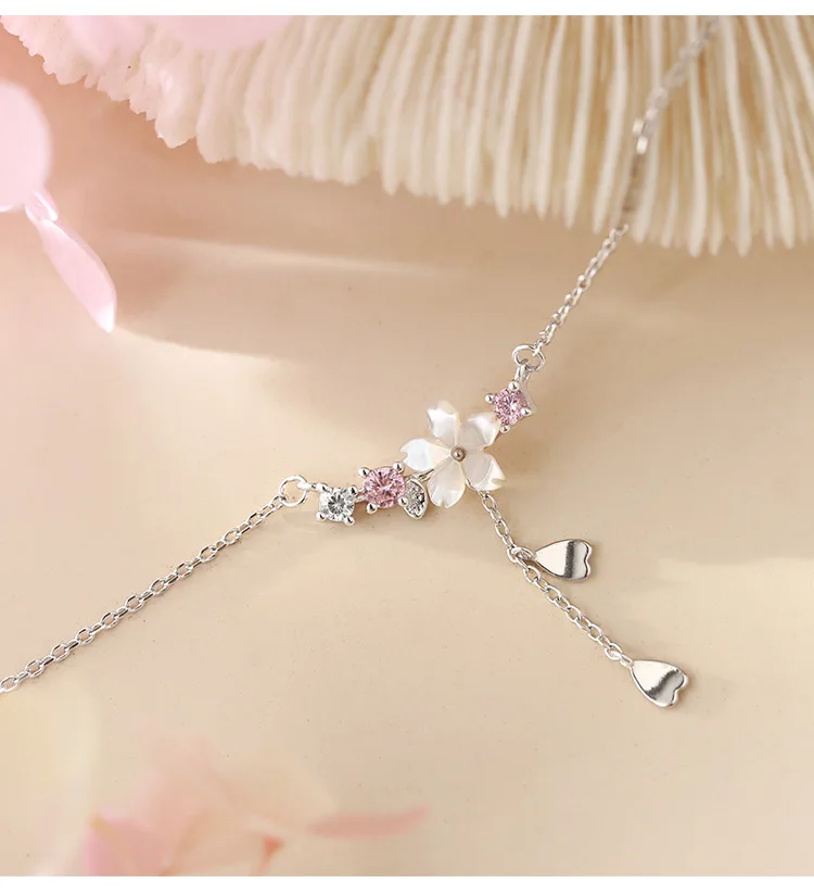 Женское ожерелье из серебра 925 пробы, ожерелье с подвеской в виде цветка вишни, цепочка-ожерелье в винтажном стиле