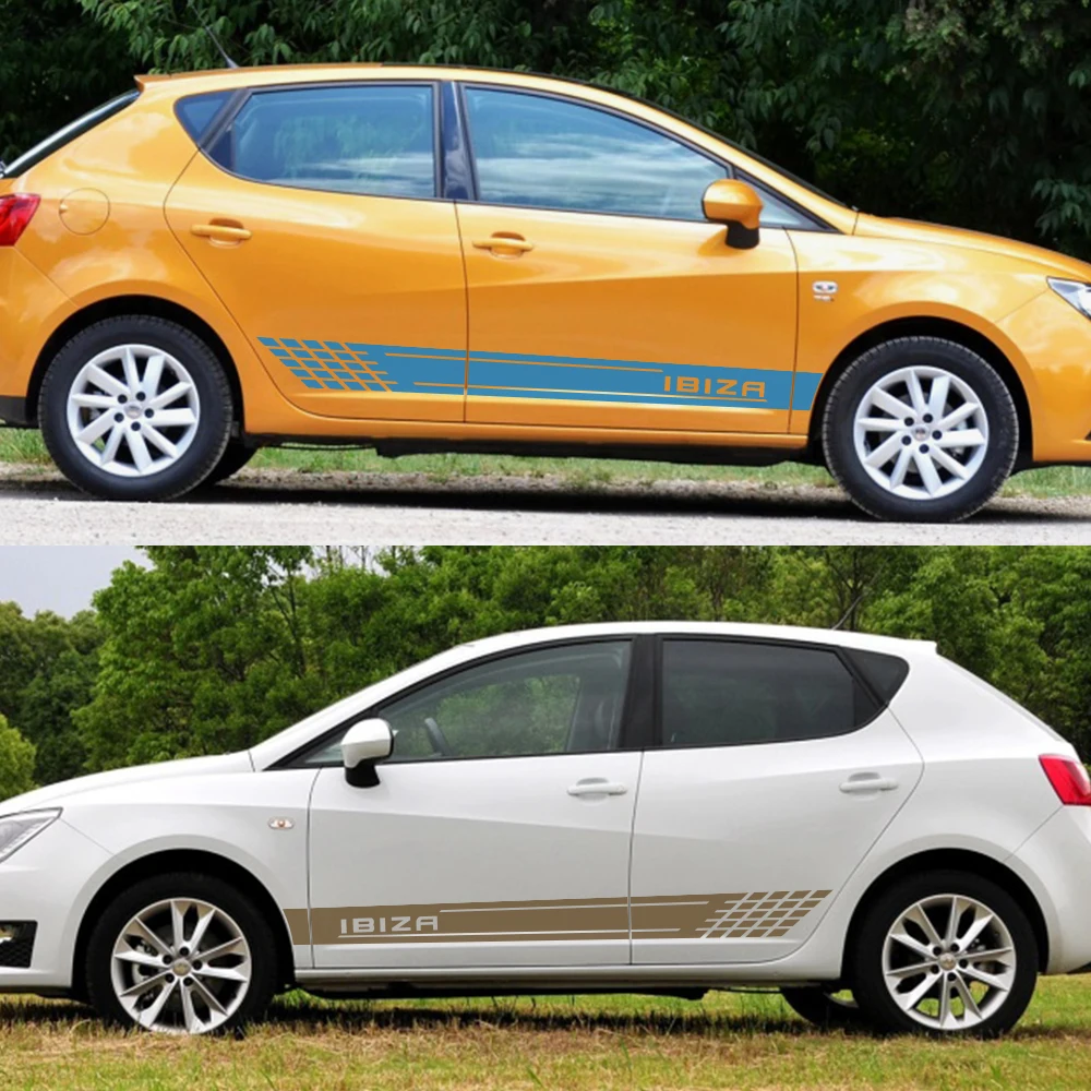2 шт. боковые наклейки на дверь автомобиля для Seat Ibiza Тюнинг авто аксессуары Длинная юбка полосы Декор Стайлинг виниловая пленка наклейки