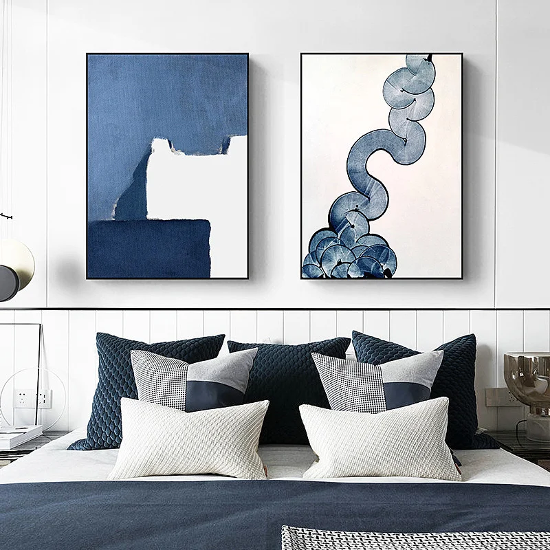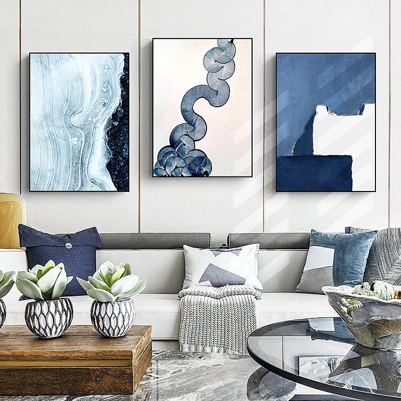 Абстрактная синяя граффити цветной блок геометрические линии холст живопись диван фон Настенная картина плакат для украшения гостиной