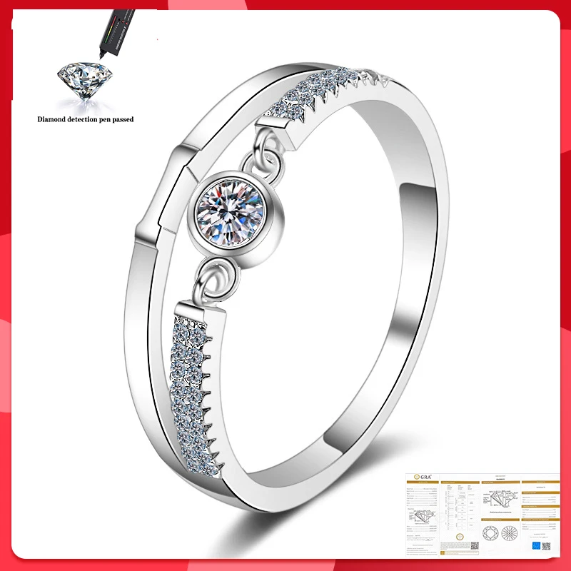 Женское Обручальное кольцо с муассанитом, регулируемое кольцо из се...