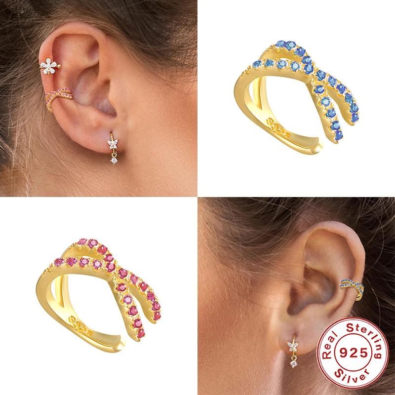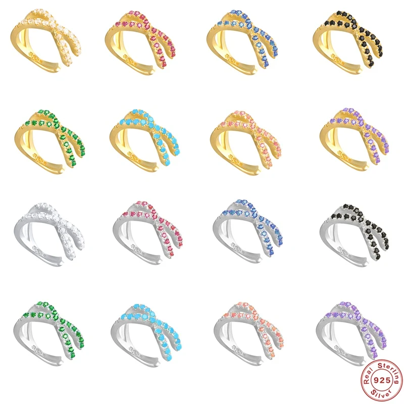 Серьги-Клипсы из стерлингового серебра 100% пробы с разноцветным микро цирконием, без проколов, корейские серьги-каффы, ювелирные изделия