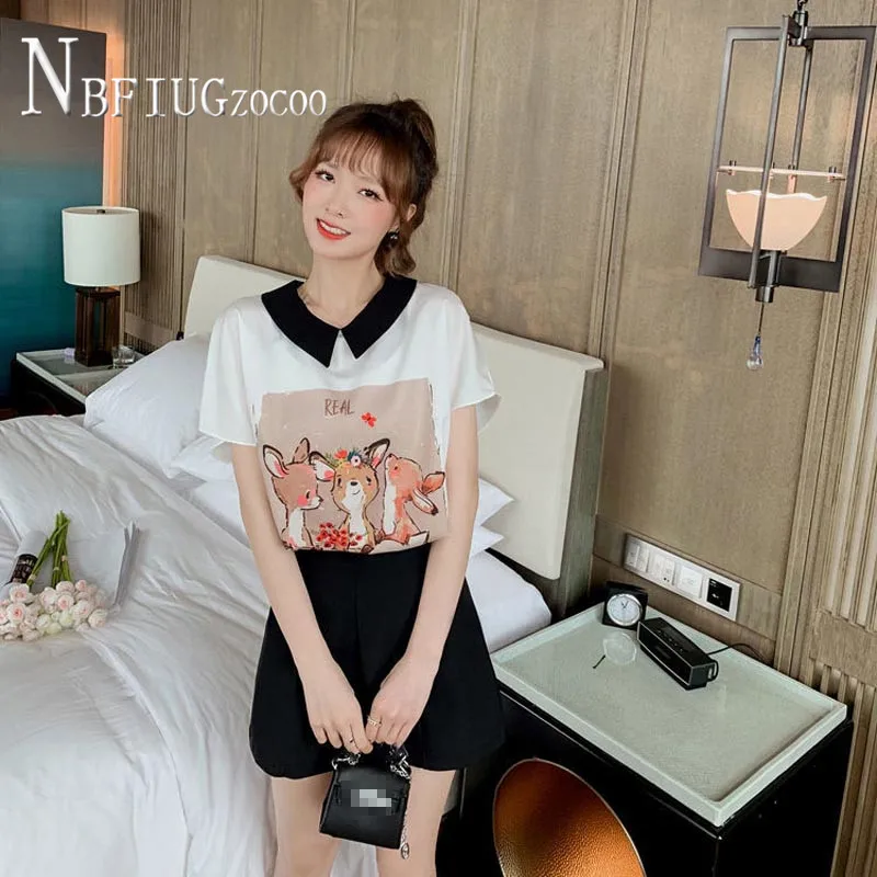 Женский шифоновый комплект из футболки и шортов, свободный костюм в Корейском стиле с рукавами летучая мышь, лето 2021