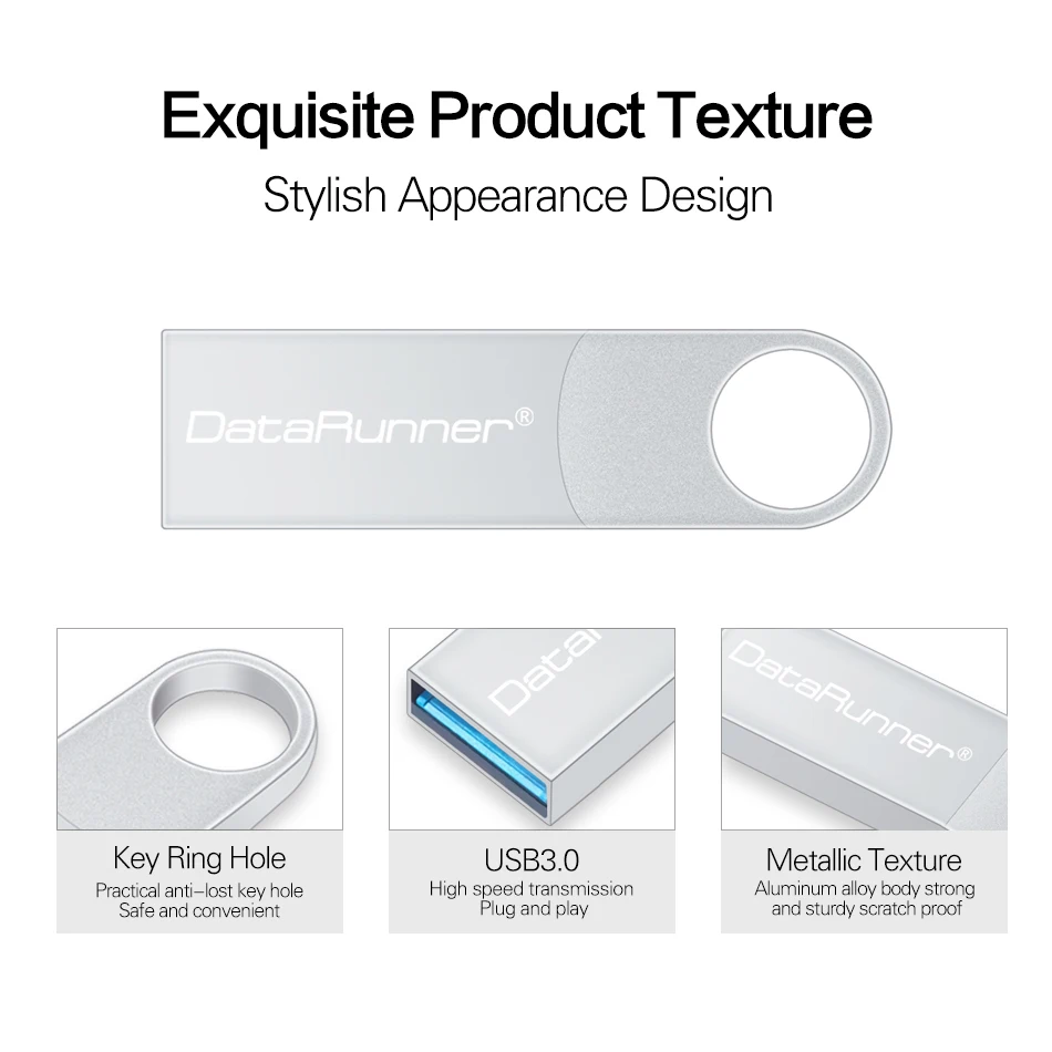 USB флеш-накопитель DataRunner, металлический водонепроницаемый флеш-накопитель 128 ГБ, 64 ГБ, 32 ГБ, 16 ГБ, 8 ГБ, 3,0