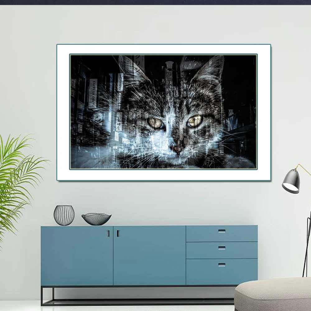 Алмазная живопись 5D с изображением кота, квадратнаякруглая мозаика...