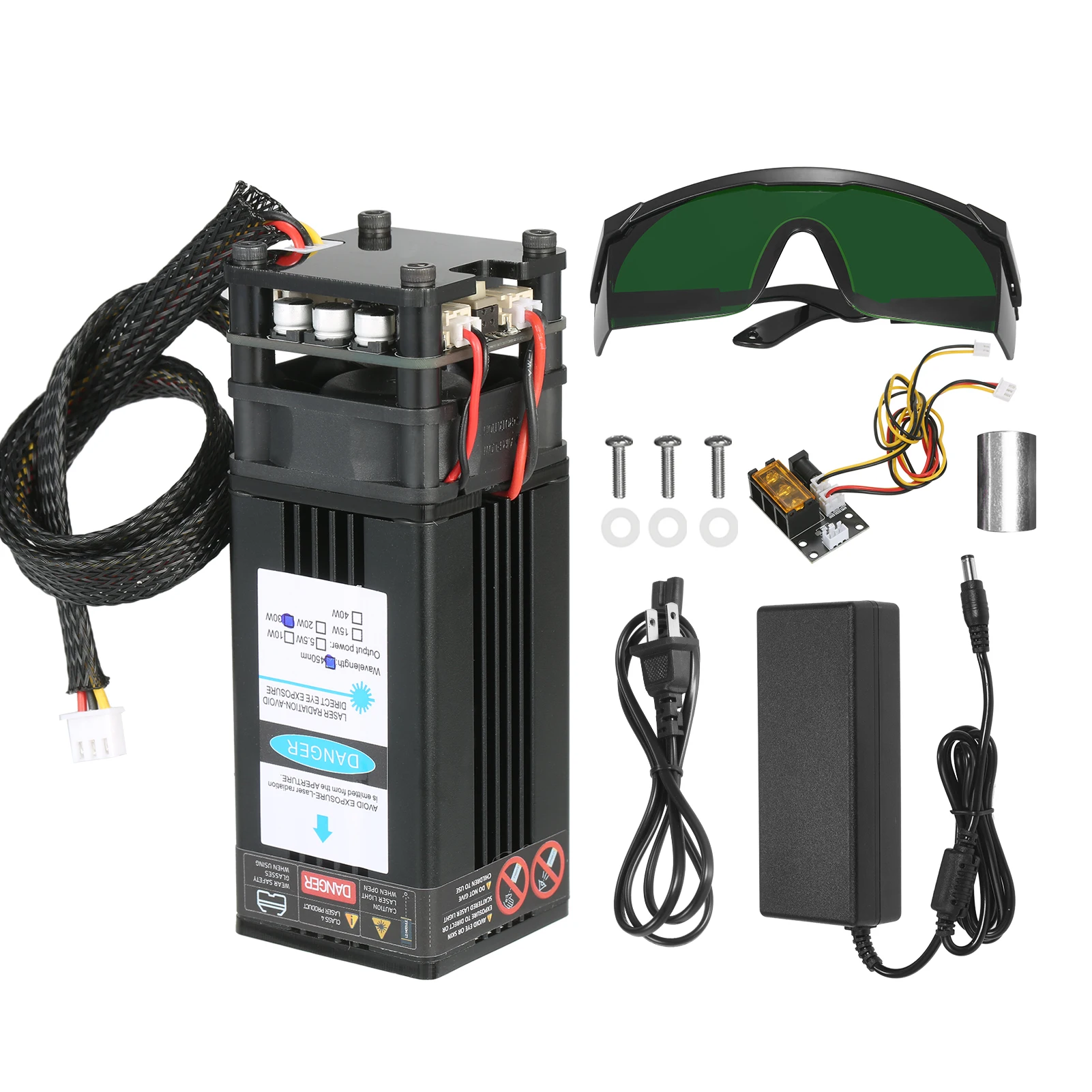Сделай Сам лазерный модуль комплект включает в себя 3 способа ввода плата адаптера с TLL кабель и 3 pin кабеля, который является универсальным соответствовать всем лазерная гравировка manchine, 3D принтер и фрезерный станок с CNC. С длиной волны 450нм, это эффективный инструмент для лазерной гравировки и лазерной резки. Есть 5 мощных лазерных modual на выбор, они могут гравировать и резать различные материалы. Особенности: Комплект лазерного модуля Universtal-посылка включает в себя лазерный модуль, 3 способа ввода платы адаптера, 2 Pin и 3 pin кабель, источник питания и шнур питания. Плата адаптера 3 интерфейса и 2 кабеля предназначены для лазерного гравера, 3D-принтера, станка с ЧПУ. Вы можете свободно использовать наш лазерный модуль в вариационной оправе. Усовершенствованный синий лазерный модуль -- усовершенствованный профессиональный лазерный модуль с более низкой потерей и высокой точностью, сохраняя при этом высокую скорость, высокую стабильность и длительный срок службы. Ярко-синего цвета с защитой от УФ-светильник, пятно света без постороннего светильник, отлично подходит для размещения в тех случаях, когда гравировка. Фиксированный фокус-поставляется с вспомогательным фокусом Colume для выравнивания расстояния гравировки между лазерным модулем и объектами резьбы. Легко собрать безопасное использование-маленький и компактный, удобный и простой в установке. Поставляются с защитными очками, обеспечивают безопасную работу. 40 Вт резной материал-он может гравировать 201/304 нержавеющую сталь, титановую сталь и анодированный алюминий, камень, МДФ, балса, дерево, ткань, пластик, печатная плата, бумага, бамбук, рог, кожа, губчатая бумага и т. Д. Не гравируется: медь r-aw Материал s, алюминий r-aw Материал s. 40 Вт режущие материалы-резка фанеры, резка черной акриловой доски, кожи, бумаги и т. Д. Спецификация: Вилка: ЕС/США/Великобритания/Австралия (опционально) Мощность лазера: 5500 МВт/10 Вт/20 Вт/30 Вт/40 Вт (опционально) Материал: алюминиевый сплав + пластик Светильник Цвет: синий с защитой от УФ Входное напряжение: 12 В Длина волны: 448-462нм Форма Facula: пунктиформа, регулируемый фокус (30 Вт не может регулировать фокусировку) Источник питания: Вход: 100-240 В переменного тока 50-60 Гц Выход: 12V 6A Упаковочный лист: 1 * лазерный модуль 1 * комплект аксессуаров для установки 1 * вспомогательный фокус Colume 1 * плата преобразования 1*2 Pin шнур 1*3 Pin шнур 1 * очки 1 * источник питания 1 * шнур питания