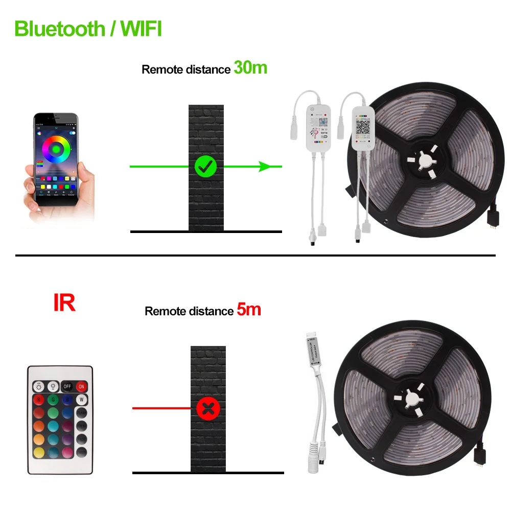 * ИК пульт дистанционного управления дальностью 5 метров, Bluetooth/WIFI Пульт дистанционного управления дальностью 30 метров* Пять метров (5*1 рулон), 10 м (5*2 рулонах), 15 метров (7,5*2 рулонах), 20 метров (10*2 рулонах)Пульт дистанционного управления не включает батарейки. (Пожалуйста, купите Модель аккумулятора: CR2025 в местном магазине)
