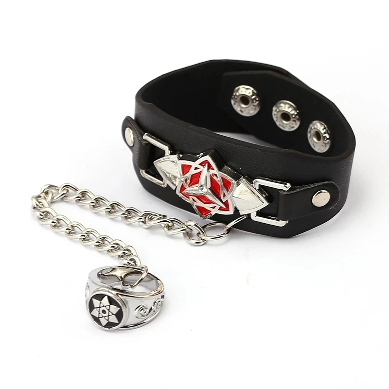 1 шт.компл. японский аниме удзумаки Учиха Саске Коноха атака на Титанов цельный кожаный браслет в стиле панк кольцо аксессуары для косплея