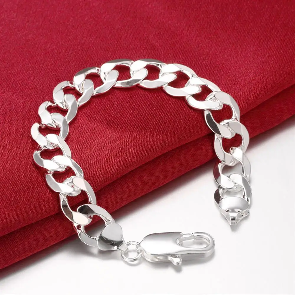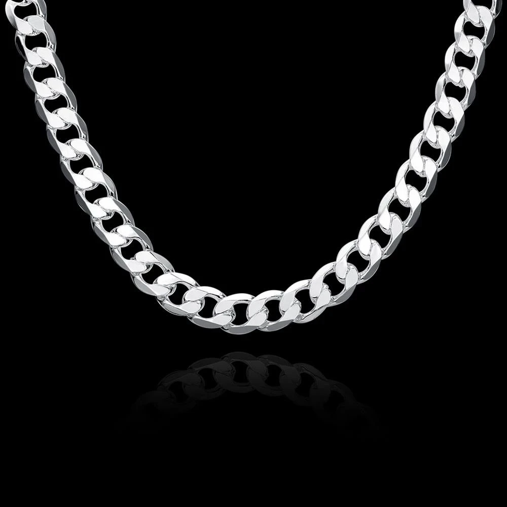 Шарм ювелирные украшения 925 стерлингового серебра для браслетов и ожерелий, комплект ювелирных изделий для мужчин; Классические 12 мм Серебряная цепочка 18202224262830 дюймов модные вечерние
