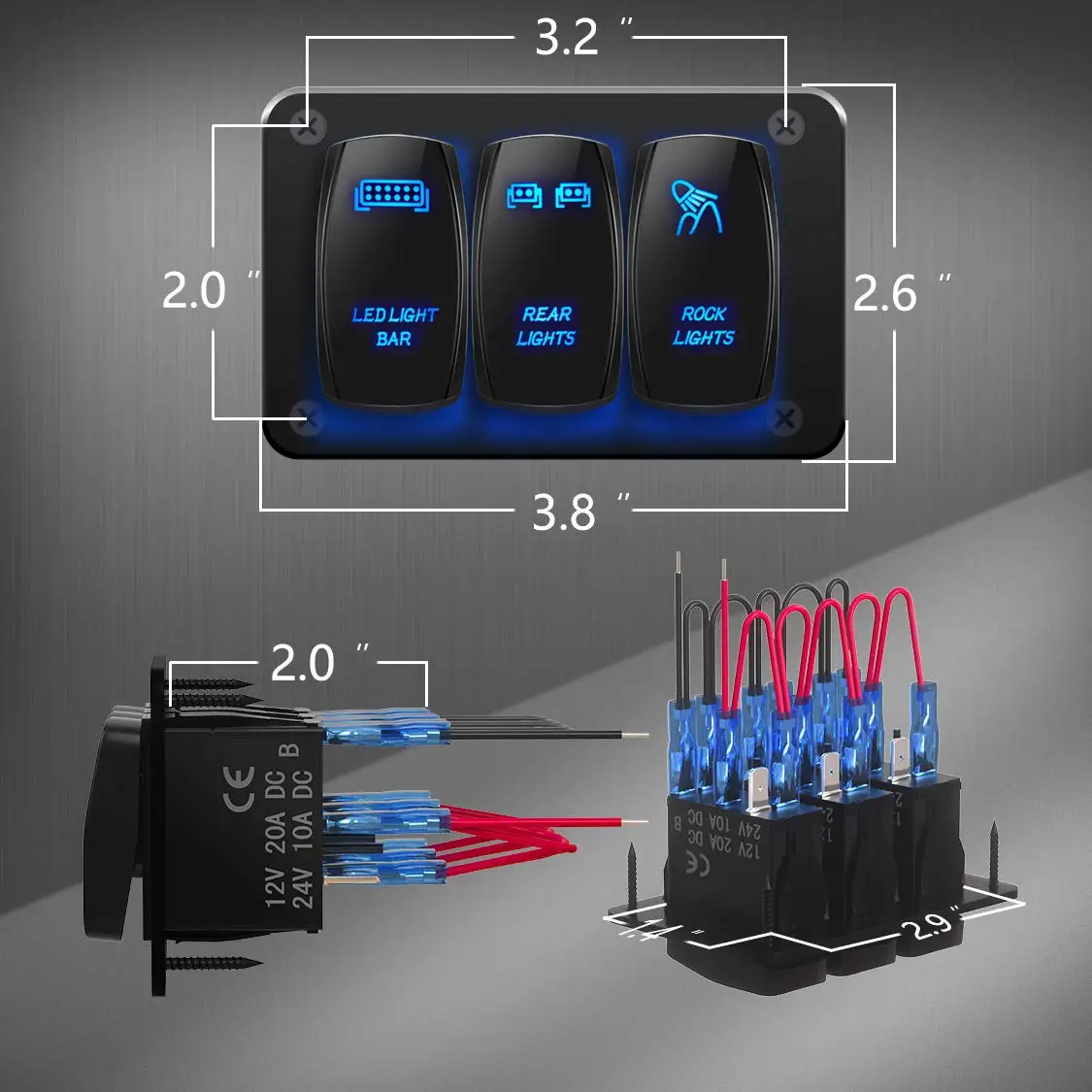 Панель перекидного переключателя с предварительно проводным жгутом проводки для вас, чтобы легко установить как в 12V, так и в 24V автомобиль, яхта, корабль, караван, грузовик и т. Д.